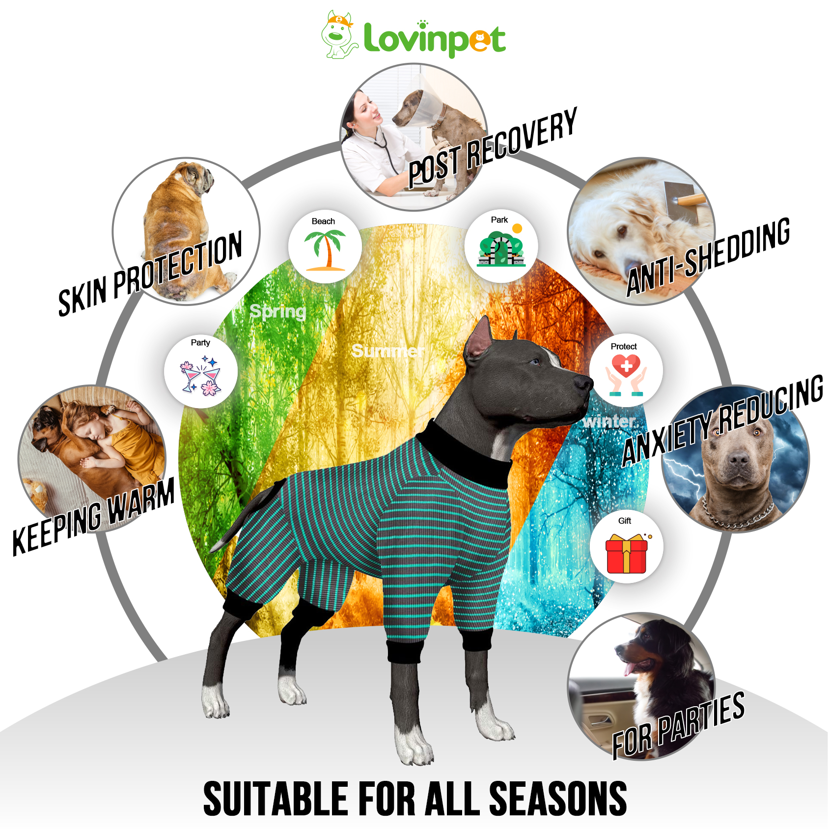 Perfect for everyday wear all seasons: Works really well for anti shedding and fits fat dogs!! The large dog to wear that would prevent his excess shedding while traveling or home. Especially in the winter or other seasons evenings, it can help protect the cold and keep warm.