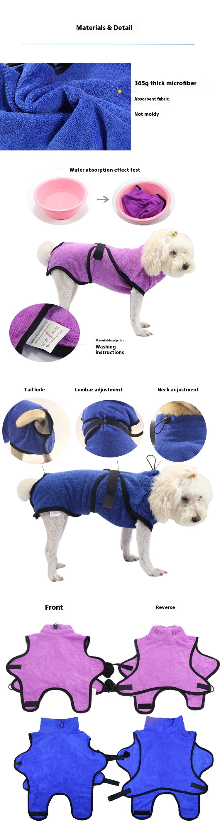 Medium & Big Dog Bathrobe - Thickened absorbent big dog bath polyester bathrobes