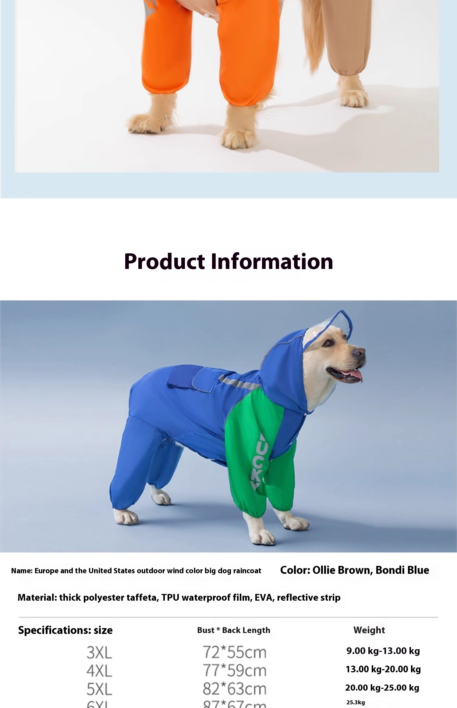Medium & Big Dog Raincoat - Four-leg all-inclusive raincoat Medium & Big Dog Raincoat - Four-leg all-inclusive raincoat