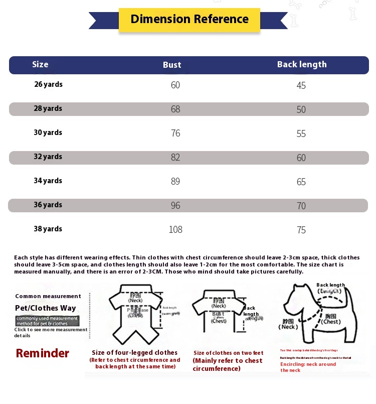 Size 34 (back 65cm chest 89cm suitable for 30.00 kg-39.00 kg