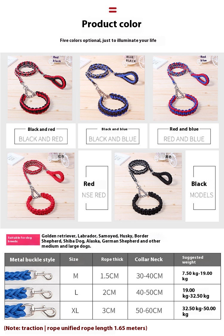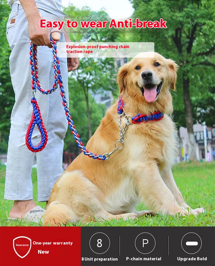 Medium to large dogs anti-bite dog chain dog hand holding rope iron chain golden retriever Labrador Samoyed dog rope collar