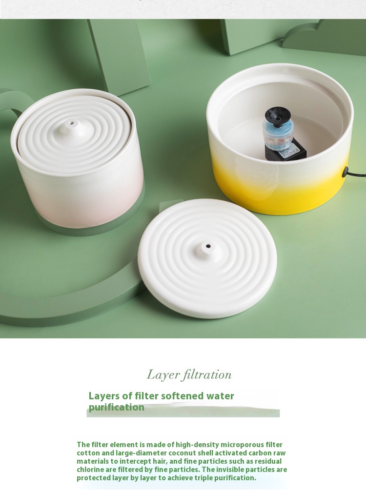 New ceramic bowl automatic circulation pet water feeder flow drinking water apparatus protection cervical