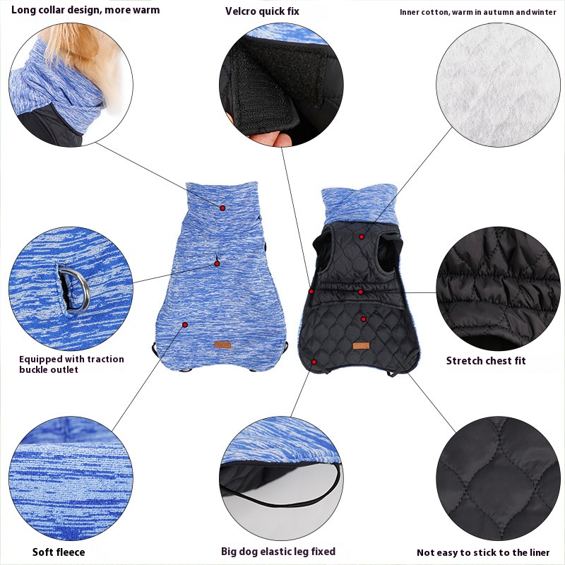 Nordic style dog autumn and winter warm clothes fleece-lined thickened pet reversible jacket long collar cotton vest