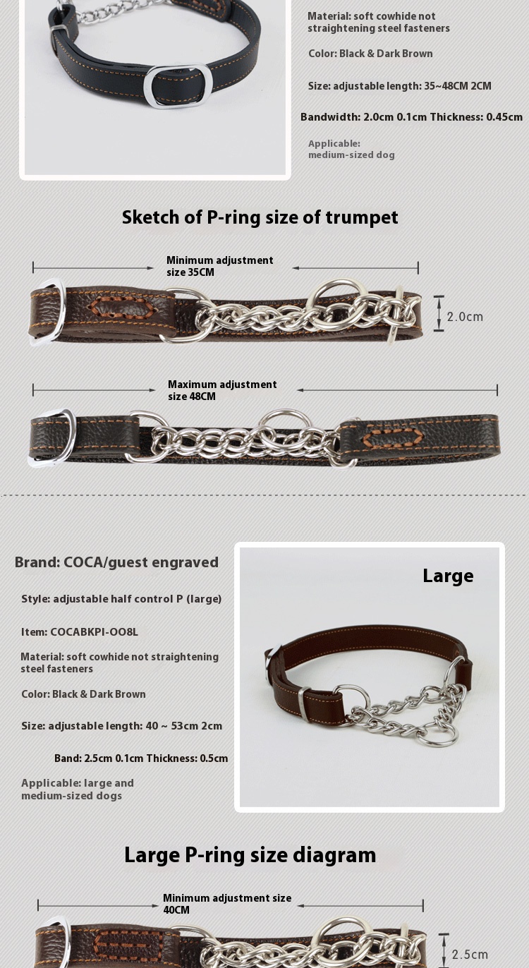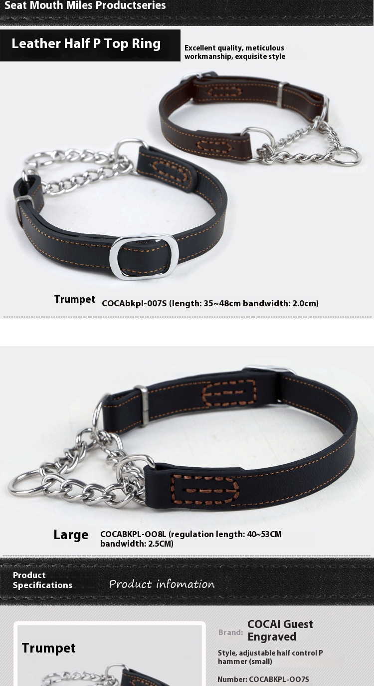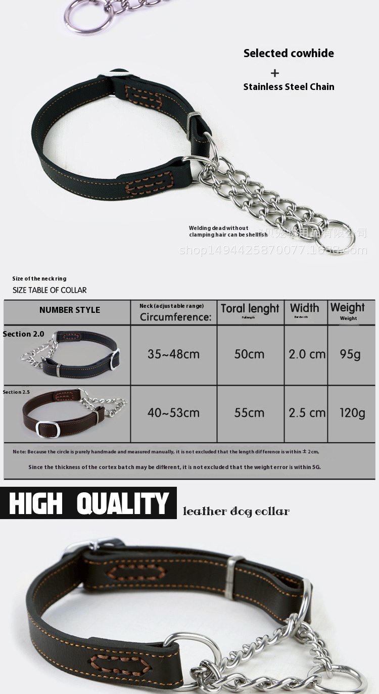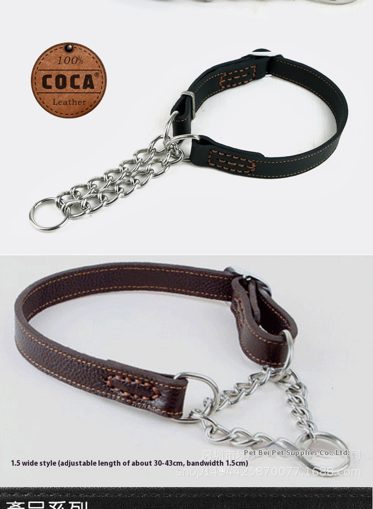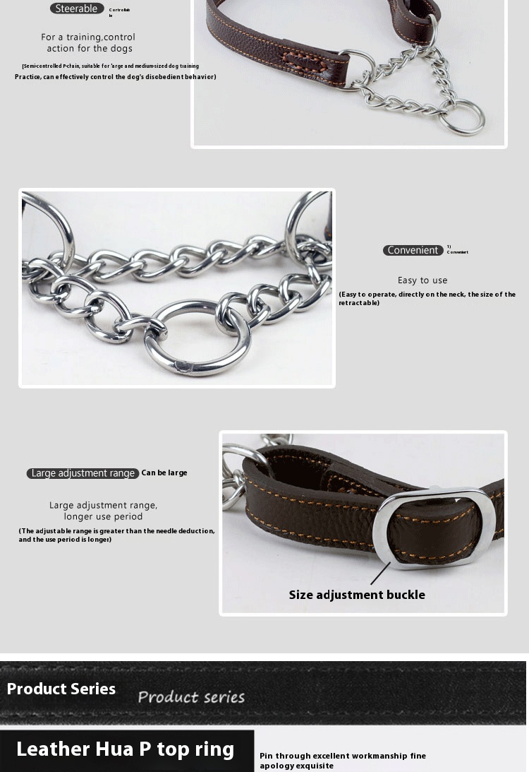 Pet authentic leather comfortable collar bite-proof protector cowhide small and medium-sized dogs collar dog stainless steel P chain leather semi-control