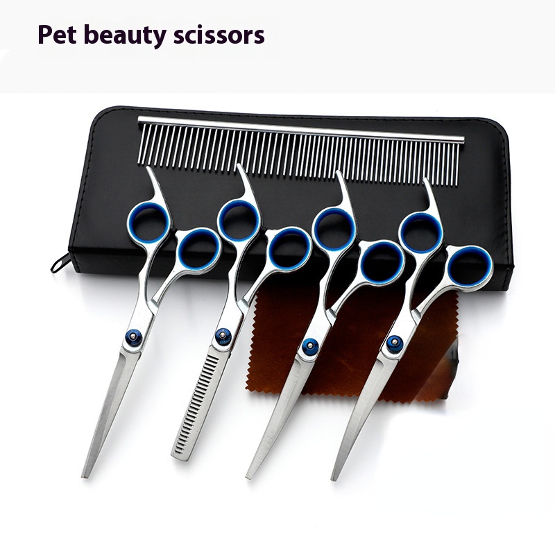 Pet Beauty scissors knife set 6-inch professional hair trimming scissors 4 suit straight scissors curved up and down thinning scissors