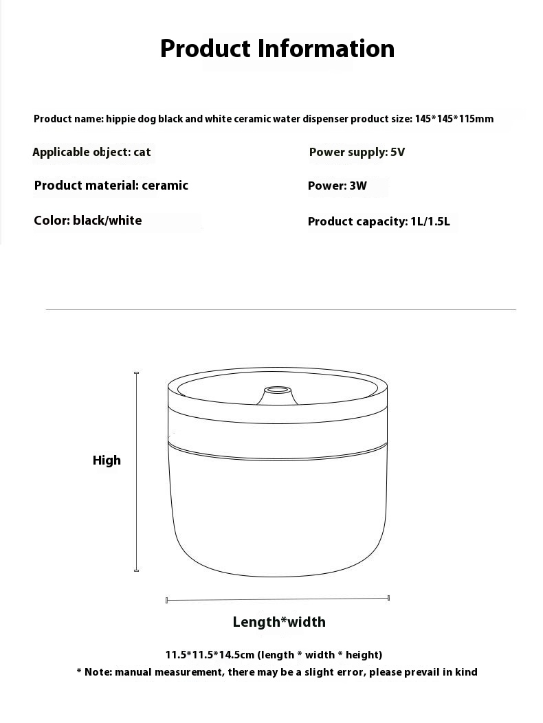 Pet black and white ceramic drink fountain cat live water circulation water dispenser dog drinking bowl teddy dog supplies Pet black and white ceramic drink fountain cat live water circulation water dispenser dog drinking bowl teddy dog supplies
