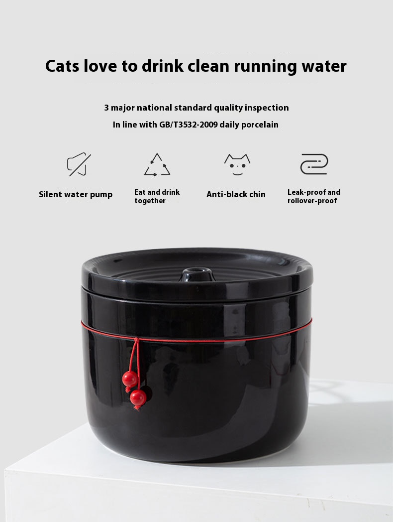 Pet black and white ceramic drink fountain cat live water circulation water dispenser dog drinking bowl teddy dog supplies