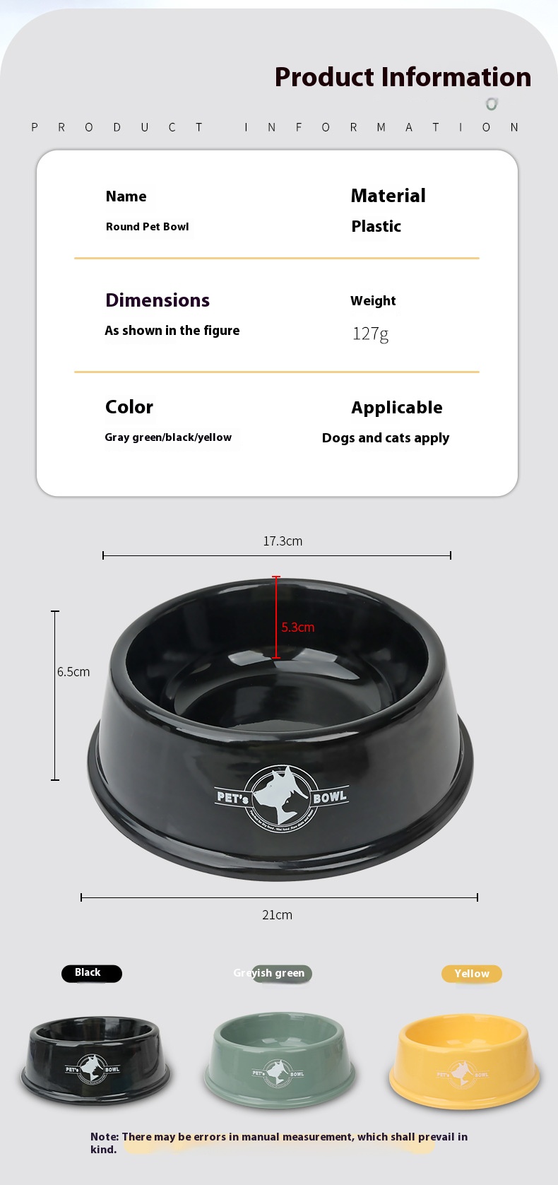 Pet Bowl dog food bowl dog cat tableware dog bowl anti-flip plastic round bowl pet food bowl