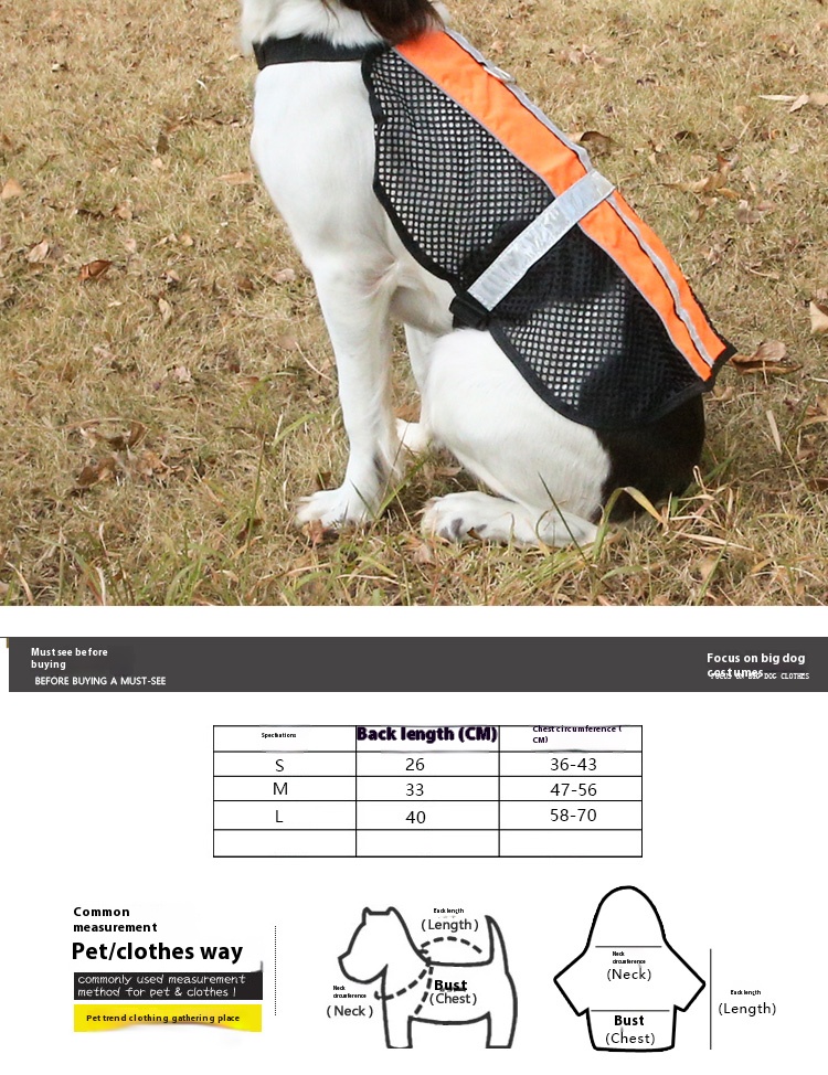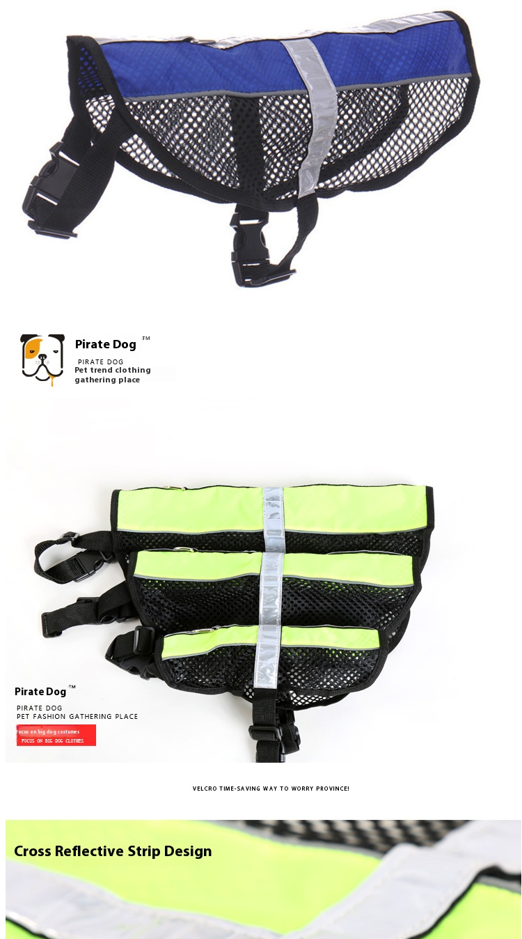 Pet breathable reflective vest spring/summer nocturnal clothes dog warning clothing working dog vest small and medium-sized dogs breathable