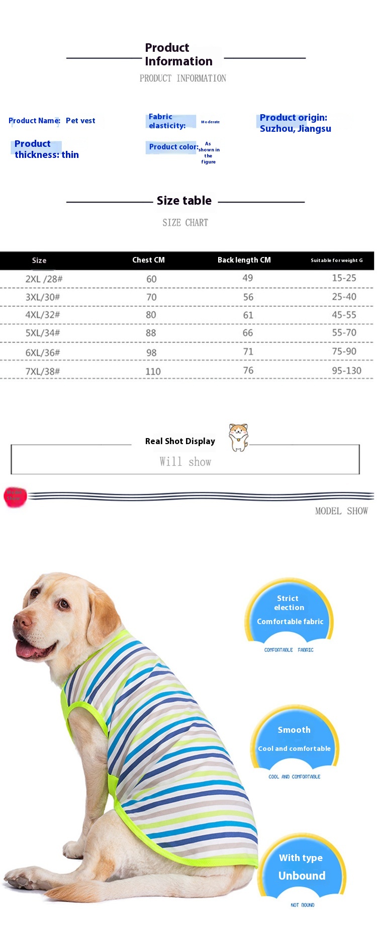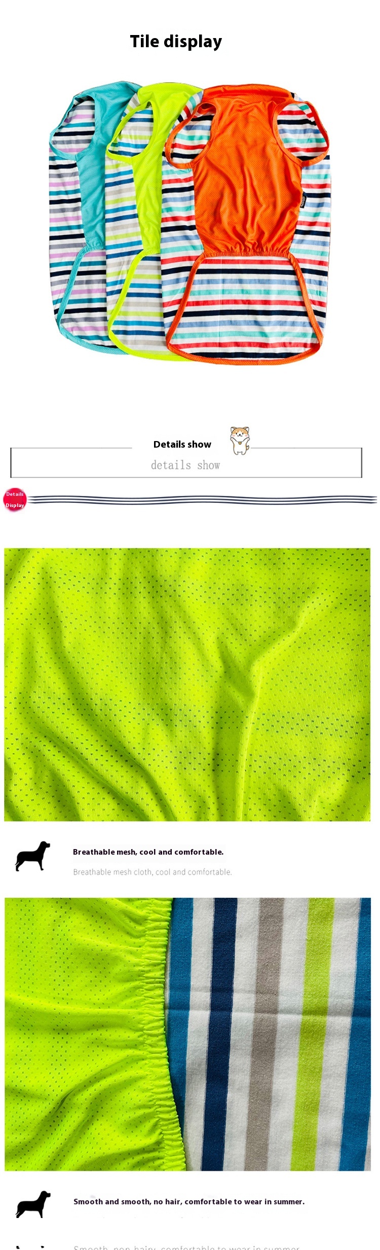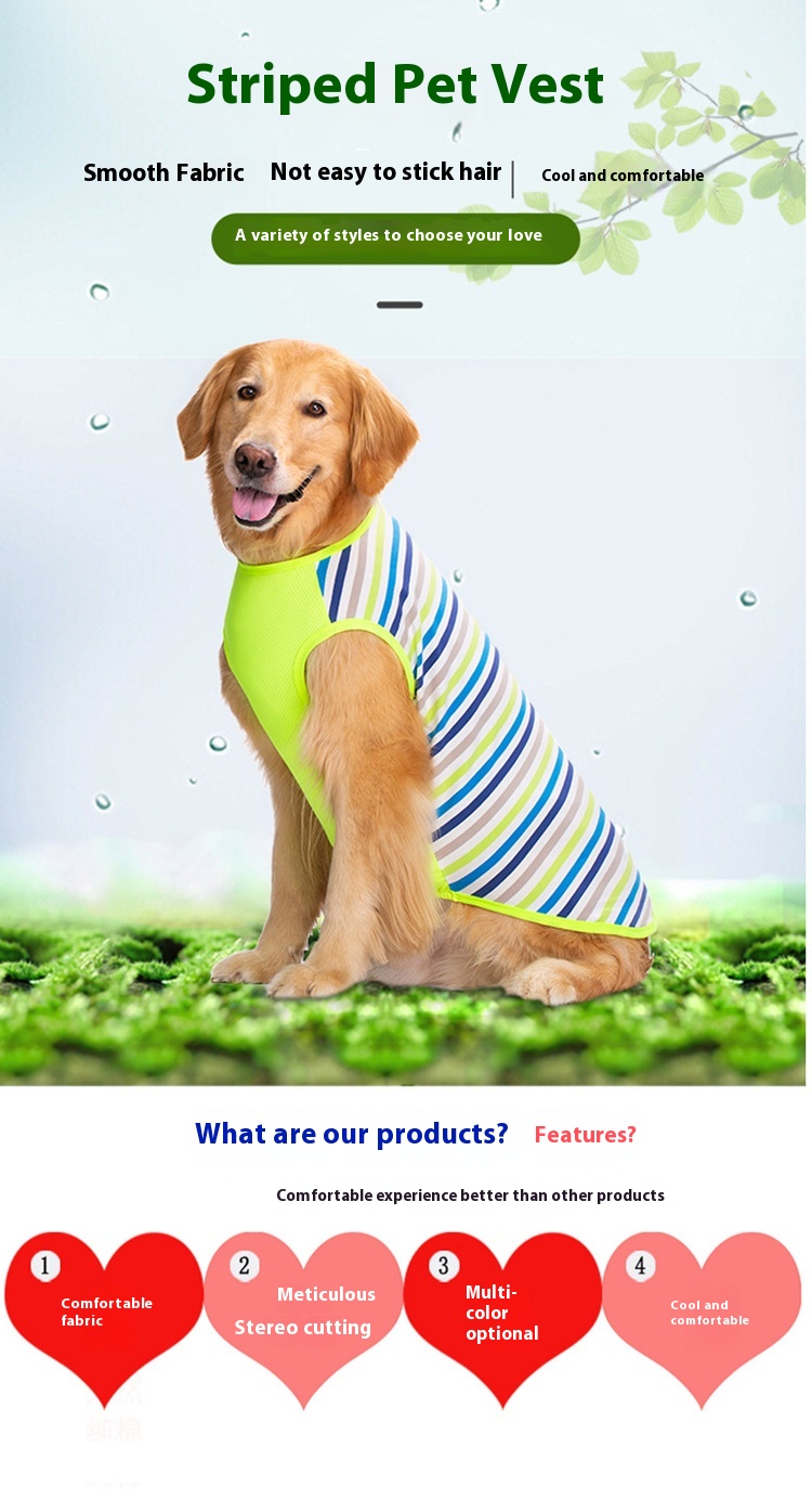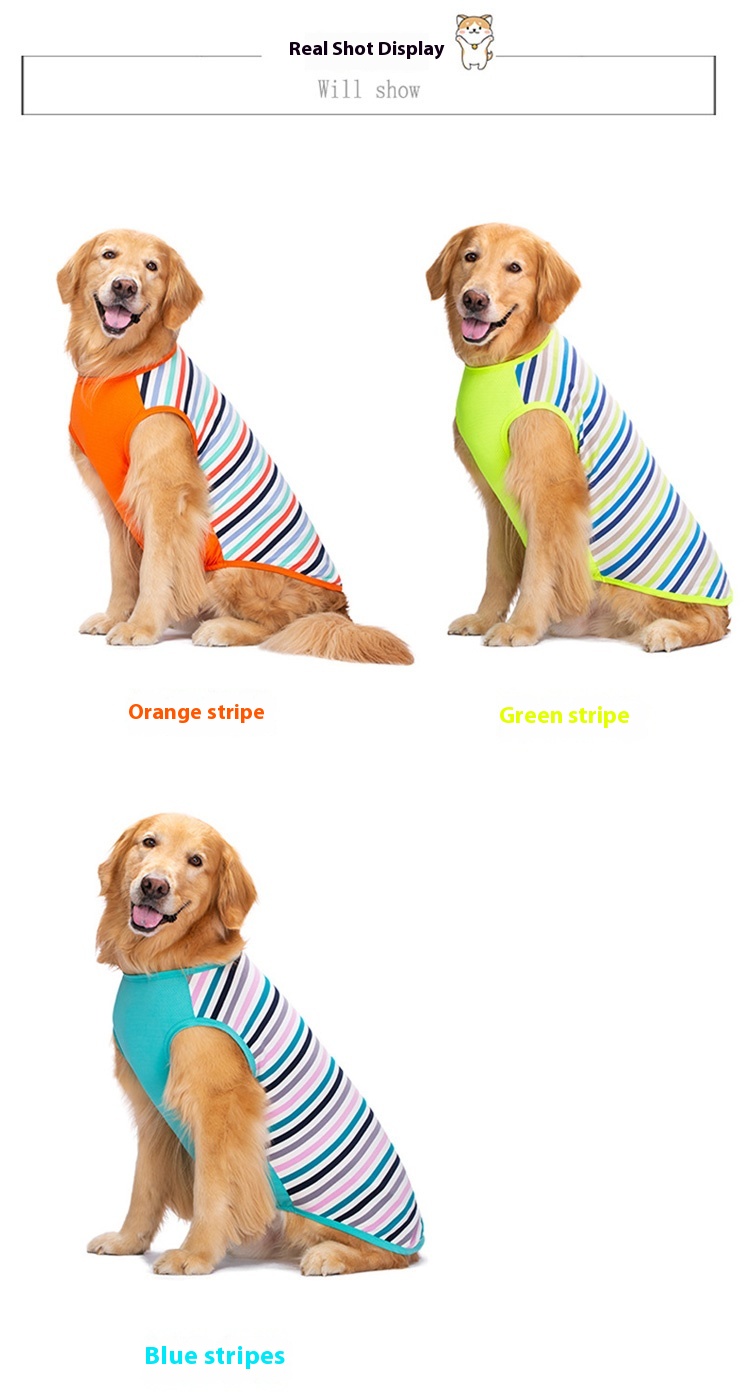 Pet breathable vest dog summer anti-lint T-shirt short sleeve golden retriever Labrador Dubin striped clothes