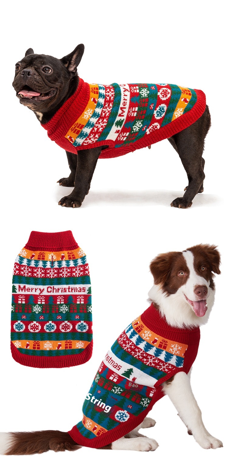 Pet Christmas festive sweater border collie Teddy Schnauzer small and medium-sized dogs knitted New Year anti-lint comfortable vest