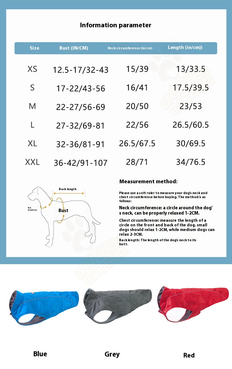 Pet clothes sports style dog shell jacket autumn and winter cold-proof warm dog coat waterproof dog clothing
