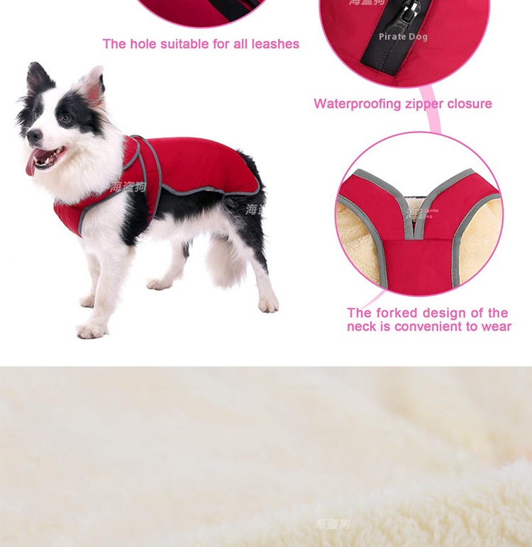 Pet coat dog winter clothing Durbin thickened warm cotton coat border collie golden retriever windproof outdoor cold-proof clothes
