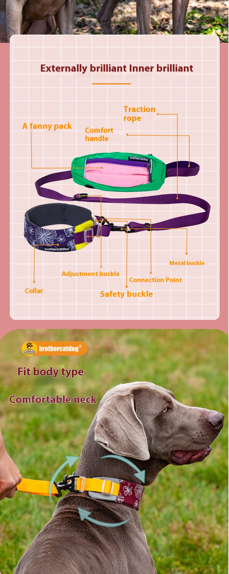 Pet collar medium large dog hand holding rope dog walking bag Weimar Dubin weizla hound adjustable telescopic collar
