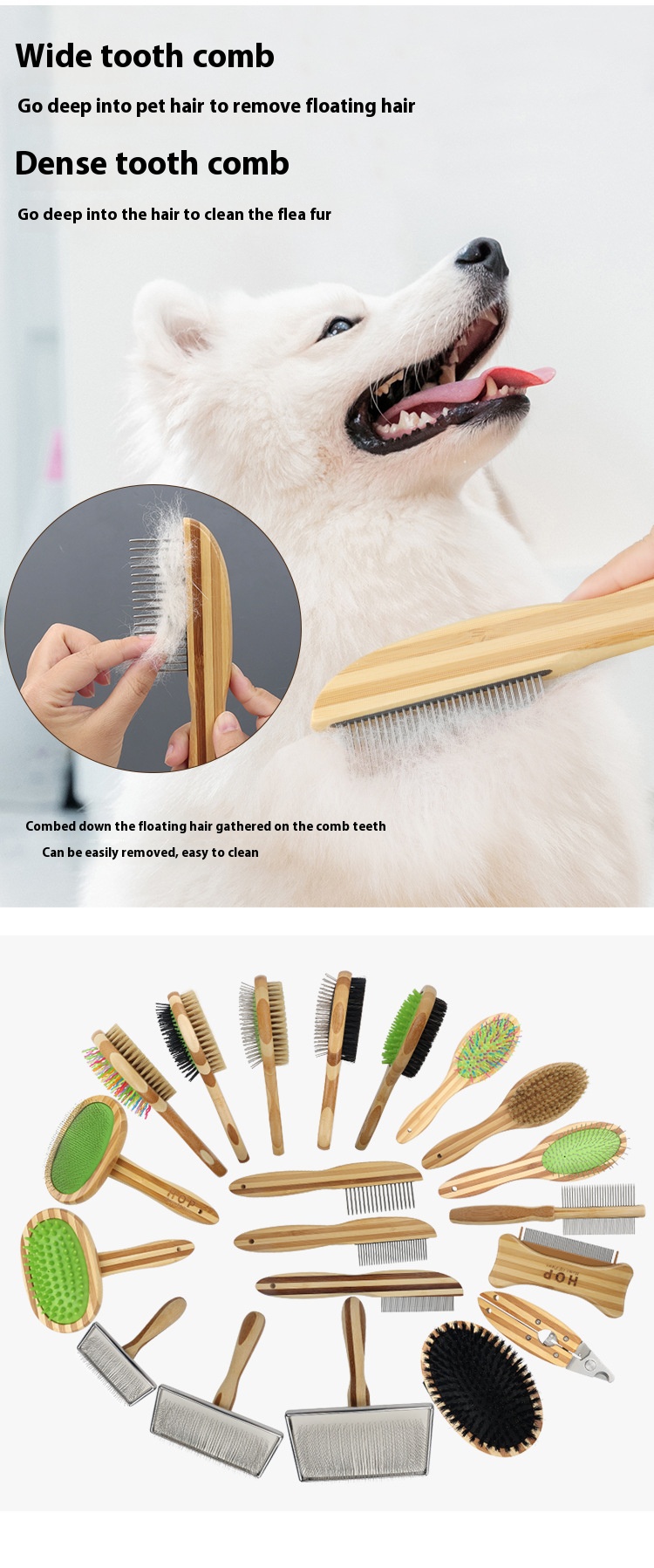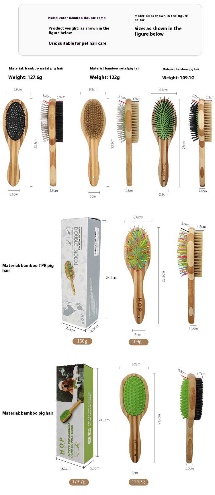 Pet comb dog double-sided beauty needle comb cat comb flea comb bamboo knot hair removal brush pet supplies
