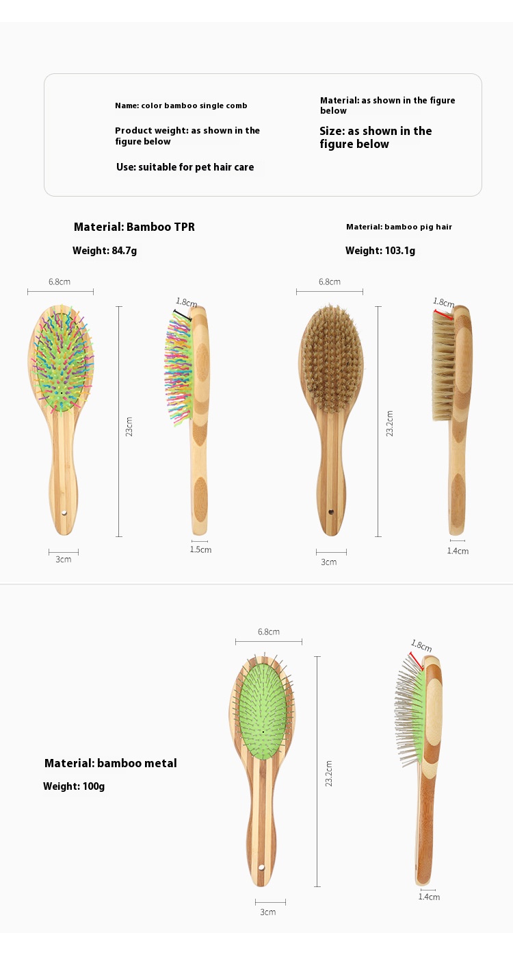 A style colorful bamboo sparse tooth pet comb