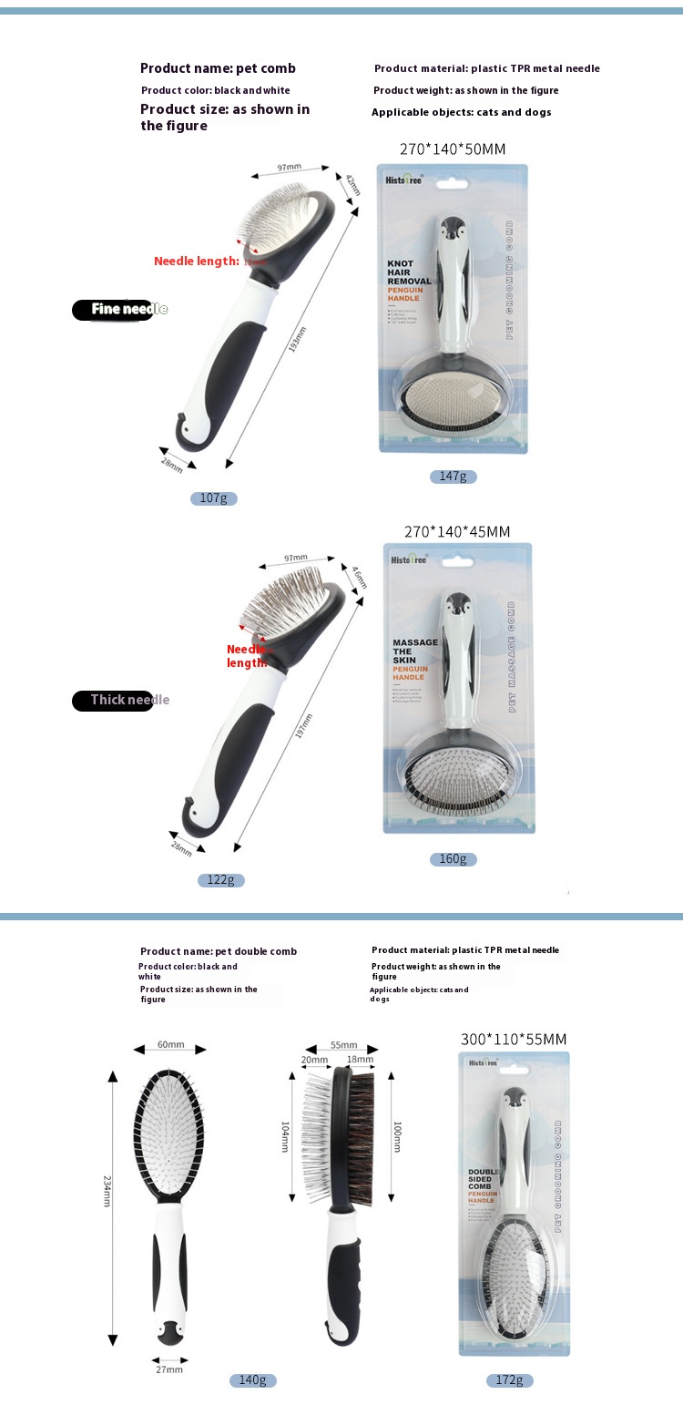Penguin (dog paw prints) double-sided knot untying comb