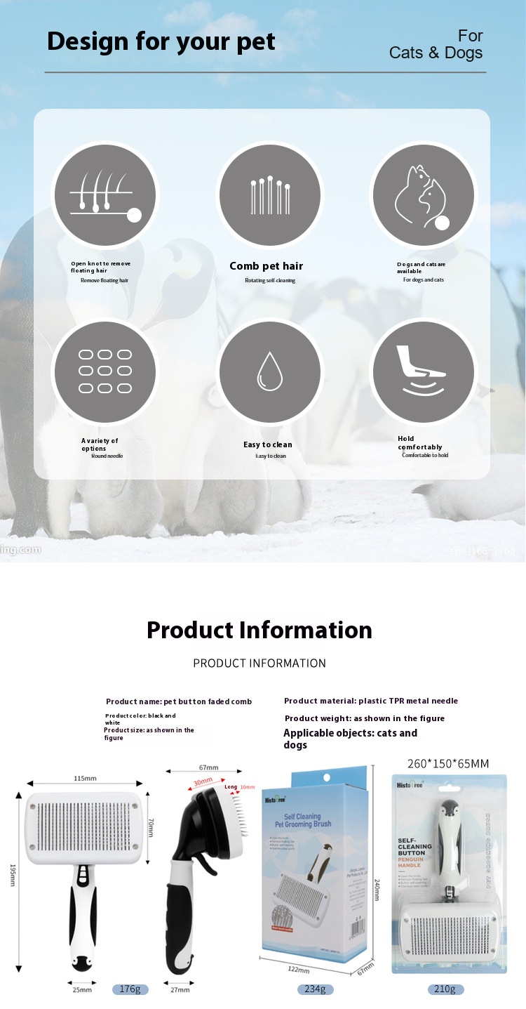 Penguin (thick needle) round head automatic hair comb