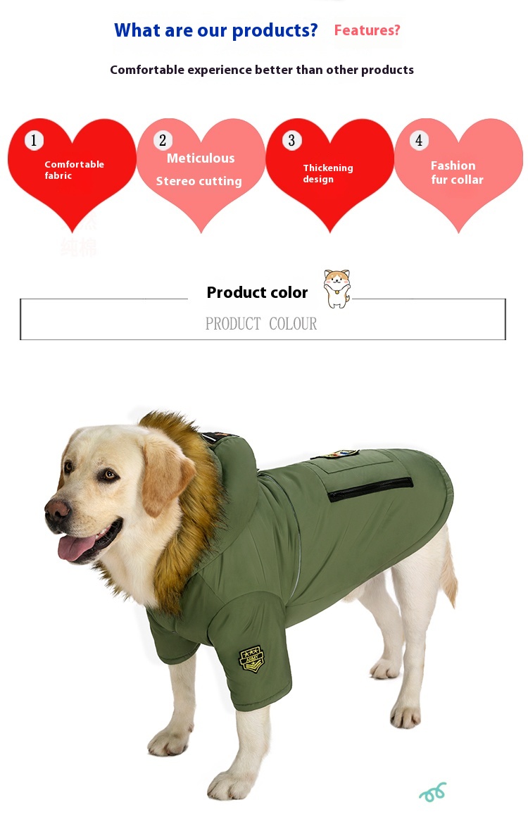 Pet dog clothes autumn and winter clothing Bichon Akita golden retriever Labrador Samoyed medium and large dog fleece-lined two-leg cotton-padded coat