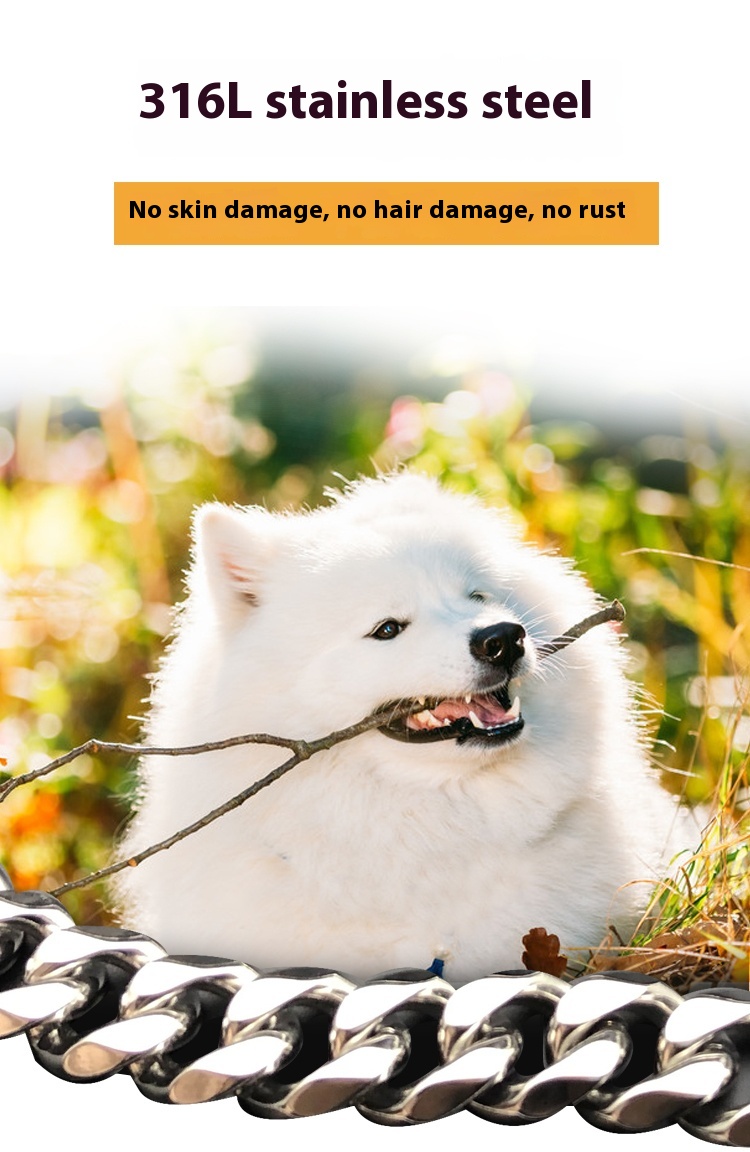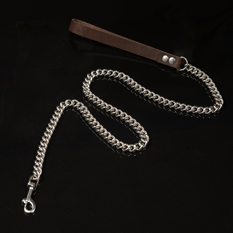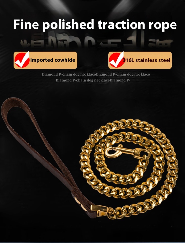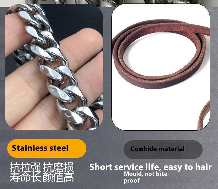 Pet dog rope stainless steel hand holding rope dog leash leather rope small and medium large dog bully golden retriever walk the dog iron chain anti-bite