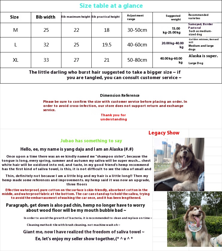 Pet dog saliva towel medium large dog golden retriever Samoyed Alaska summer anti-dirty saliva cute dog