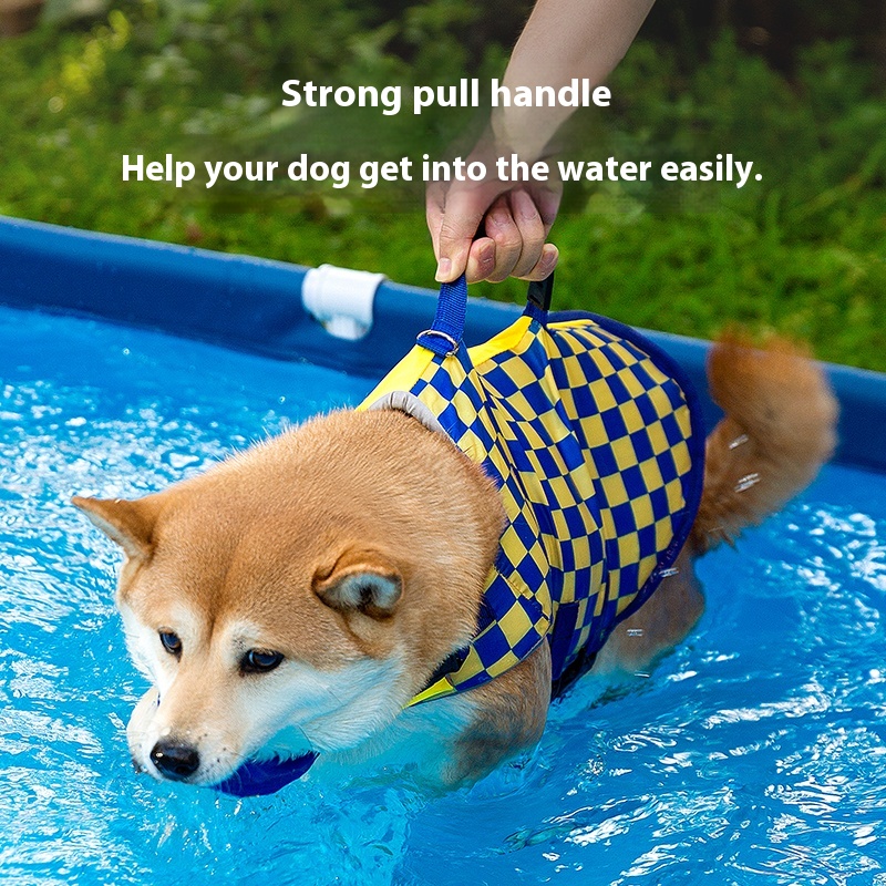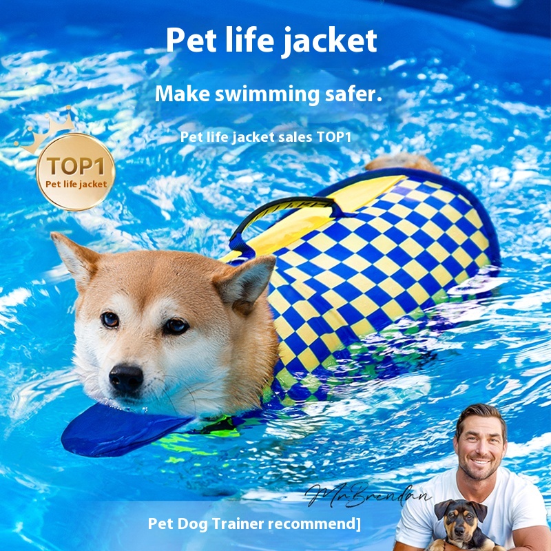 Pet dog summer swimming swimwear simple Plaid stitching life jacket Shiba Inu Jarre Aero bull Corgi medium and large dogs supplies