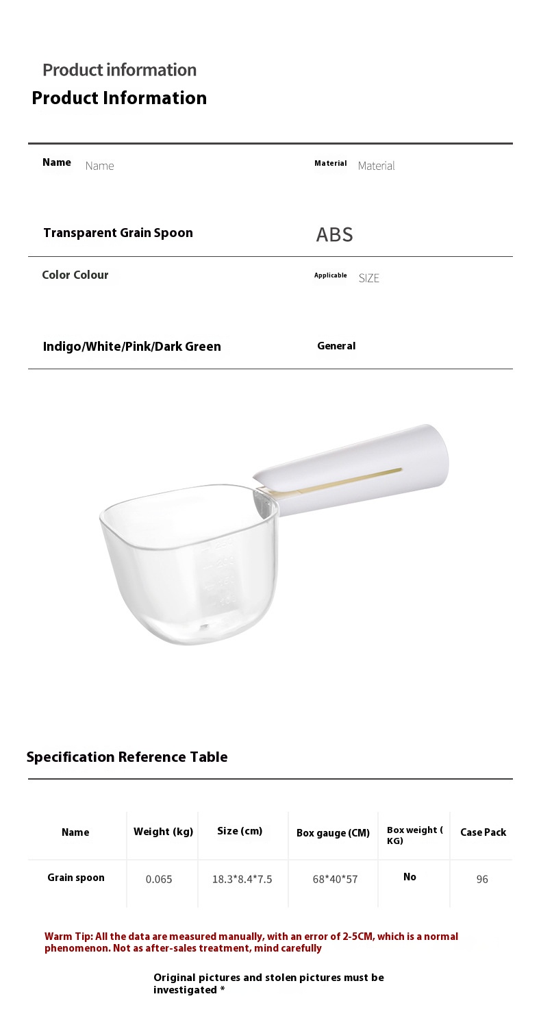 Pet food transparent and graduated spoon cat food large capacity feeding shovel clip integrated dog food sealing clip