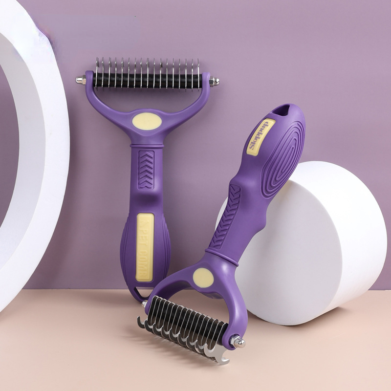 Purple double-sided knot untying comb