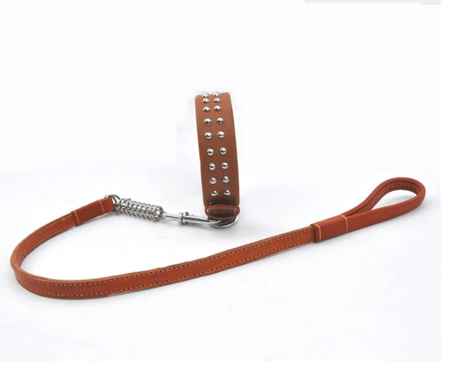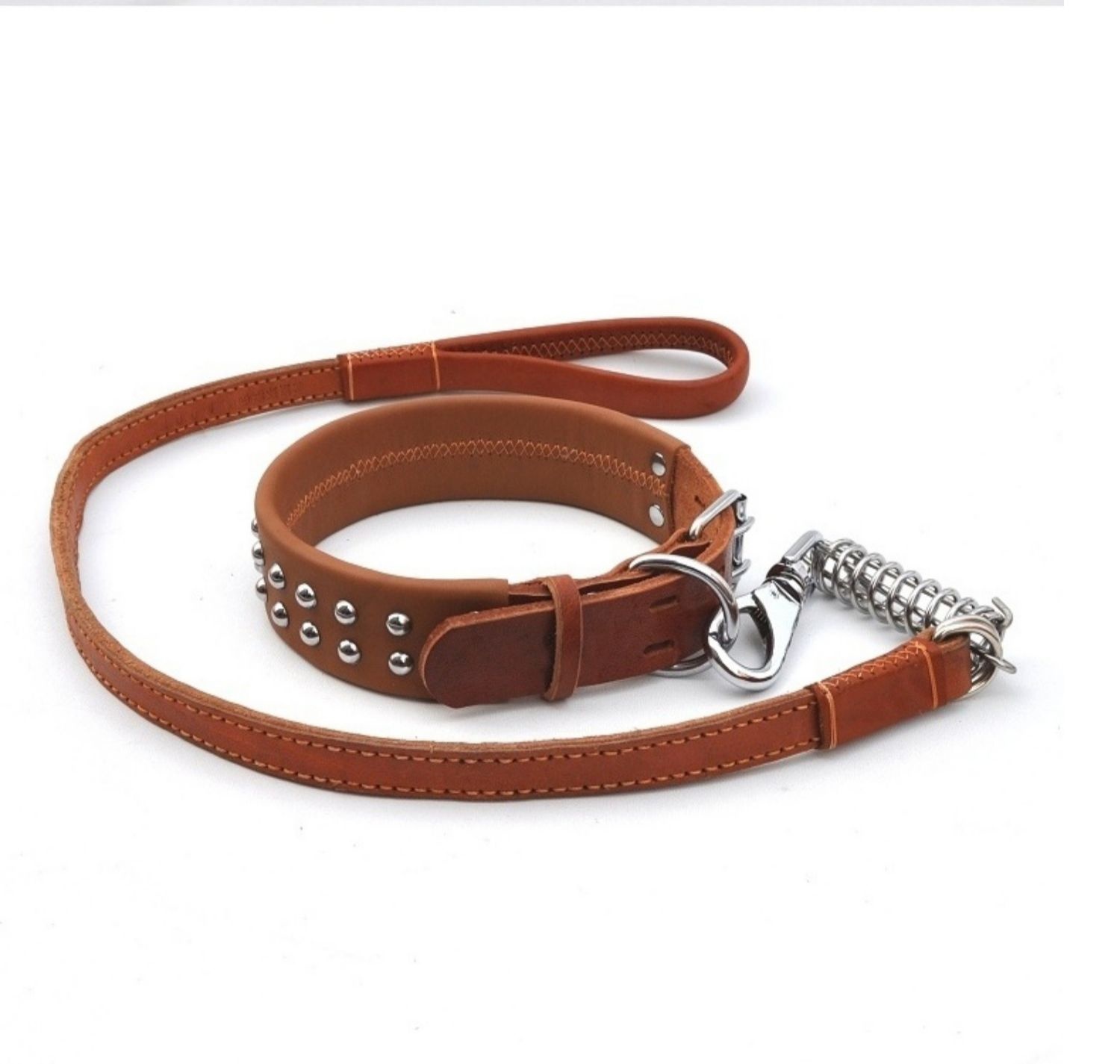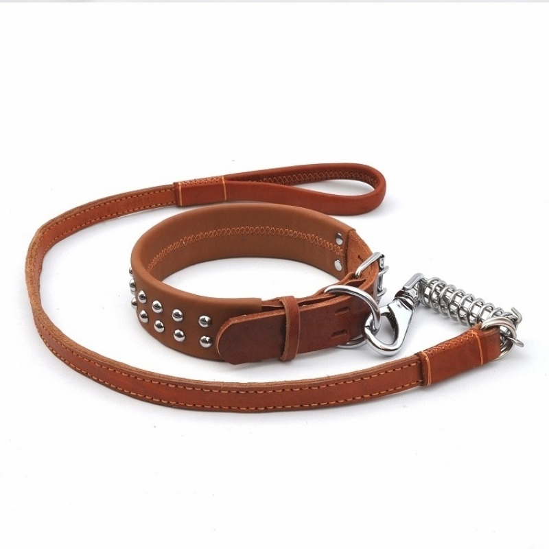 Pet leather hand holding rope necklet set large dog cowhide dog leash collar traction belt dog chain
