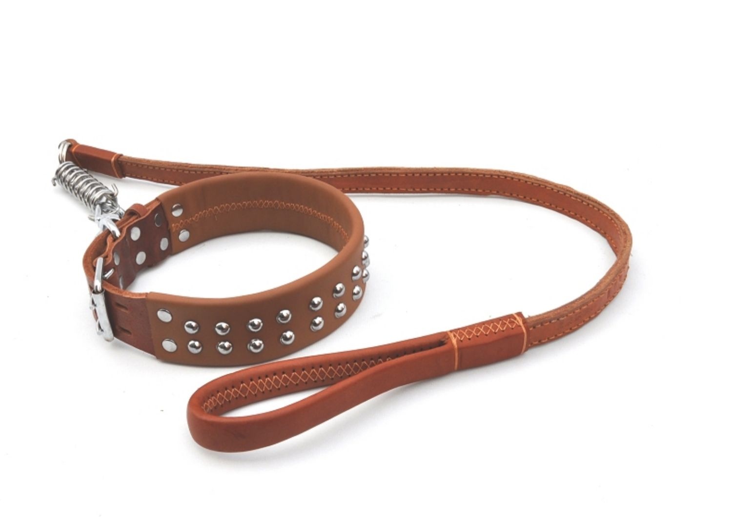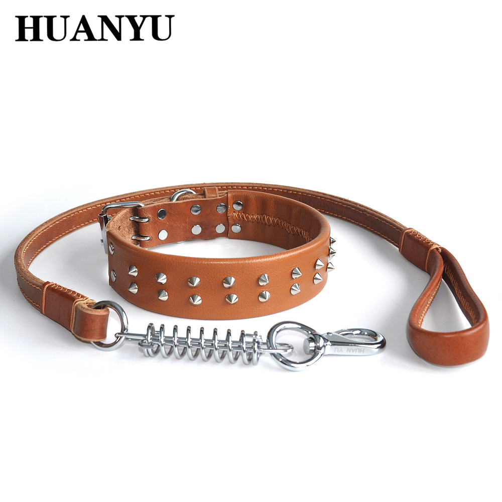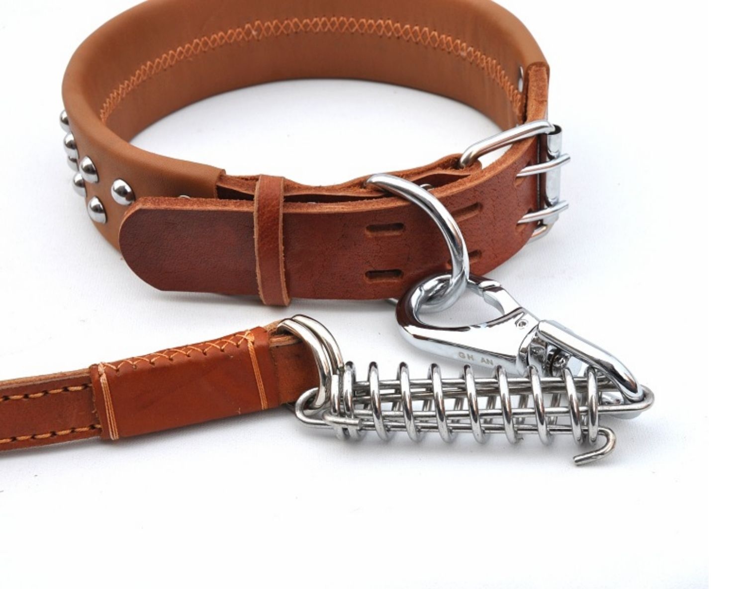 Pet leather hand holding rope necklet set large dog cowhide dog leash collar traction belt dog chain