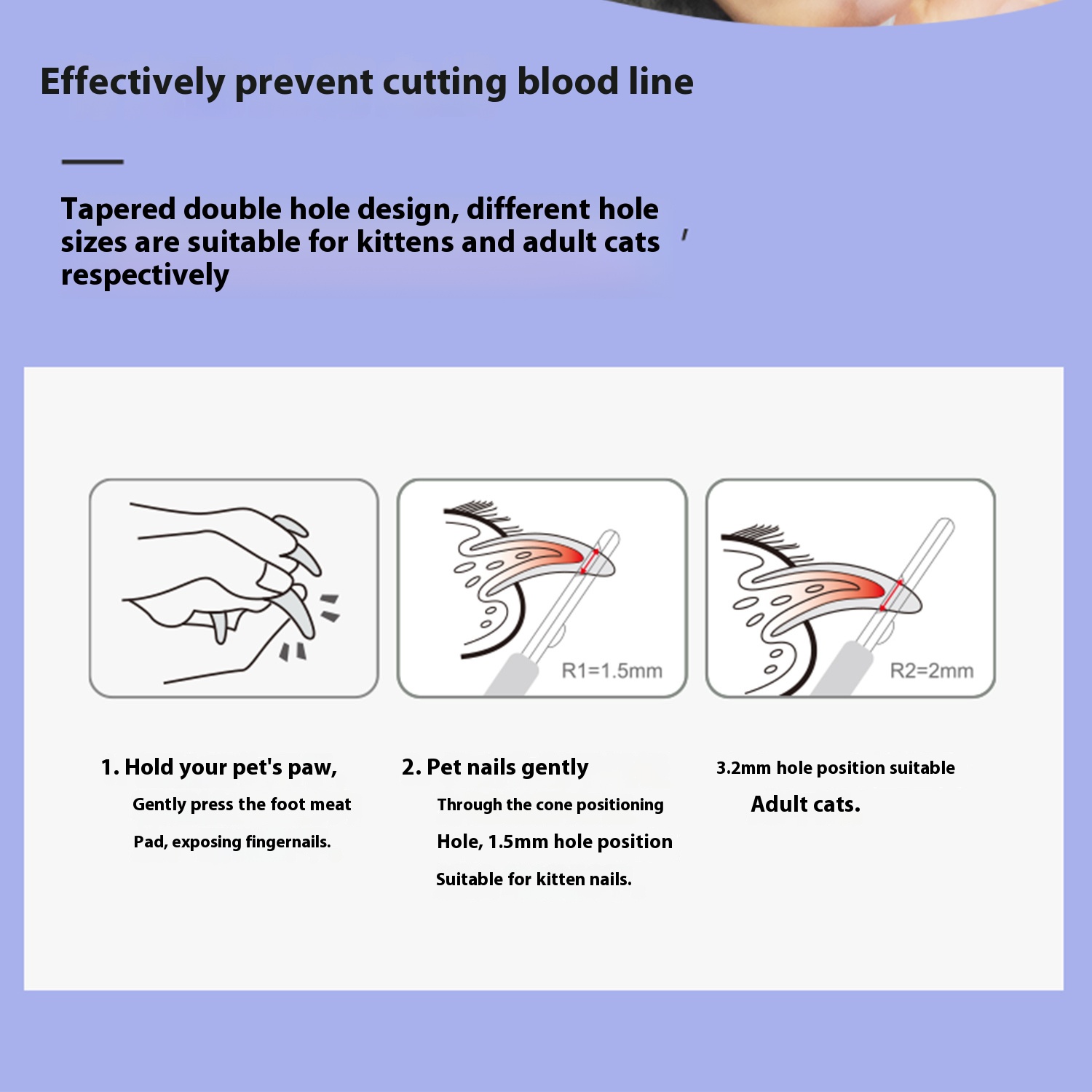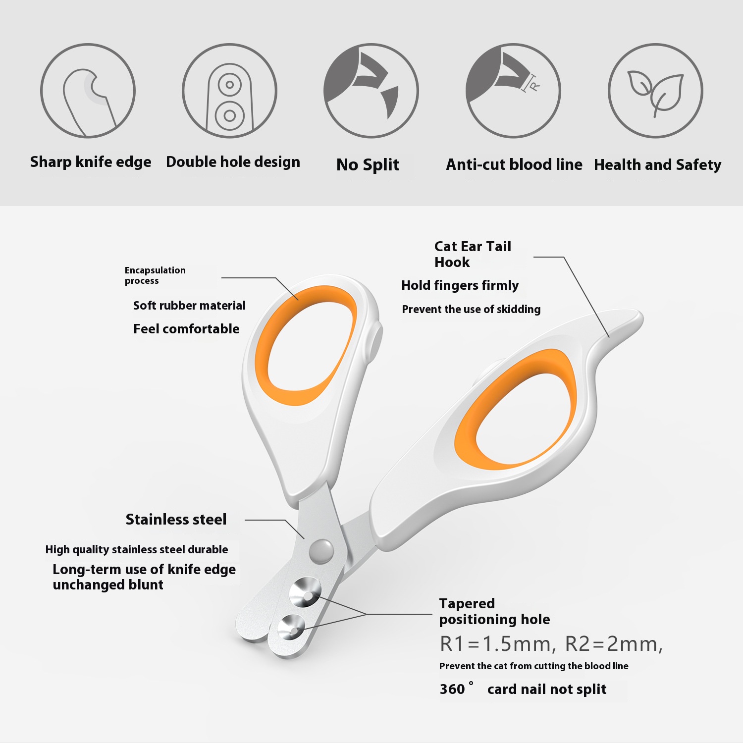 Pet nail clipper round hole cat scissors kittens adult cat stainless steel anti-shear blood line double hole toe nail clipper