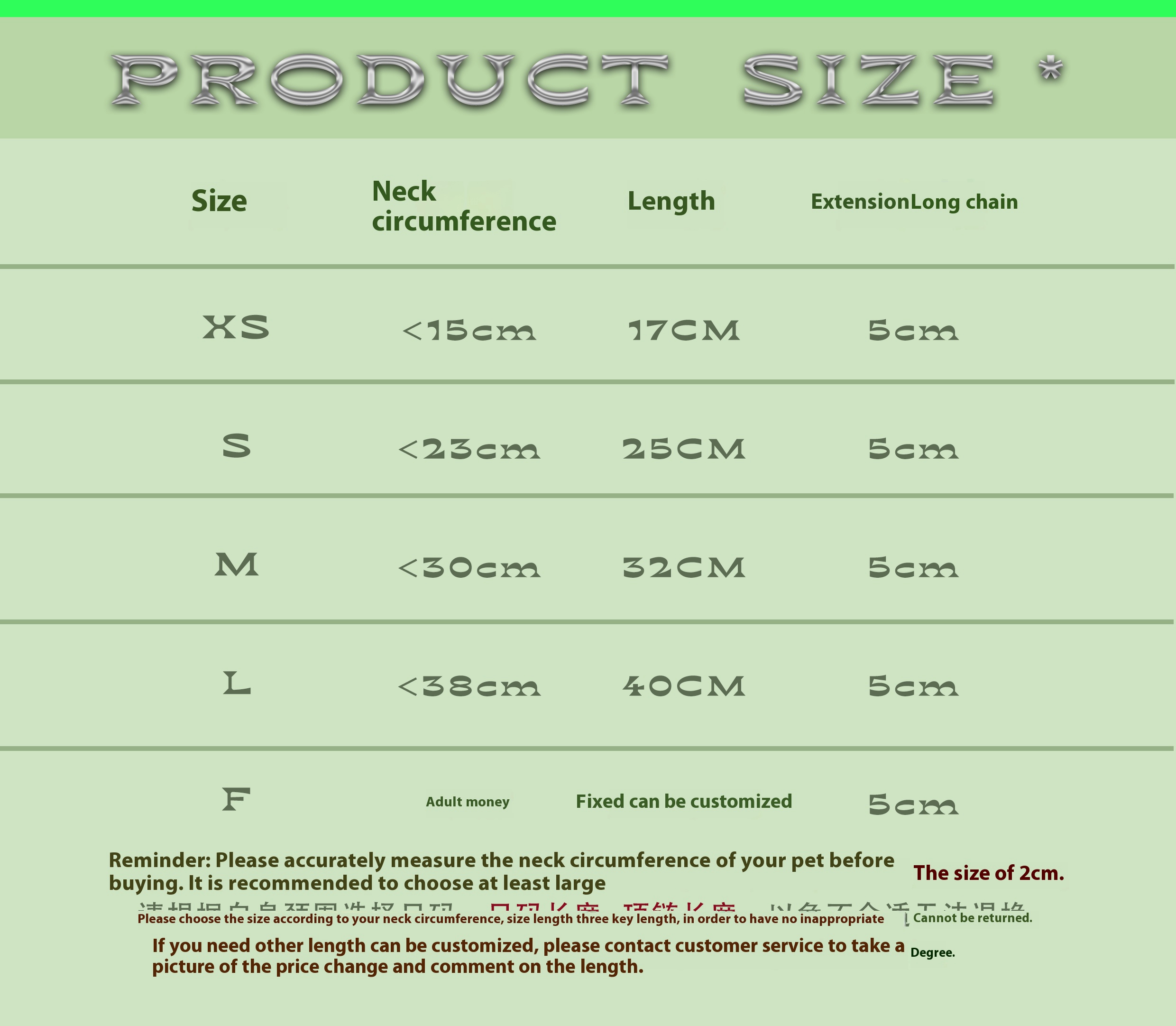 Owner's average size 43cm + extension chain 5cm