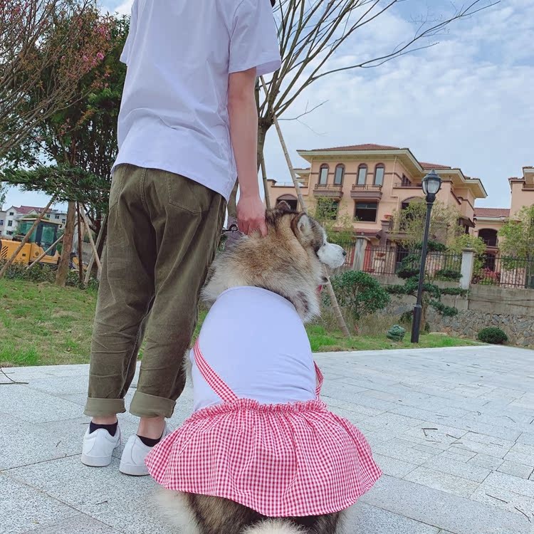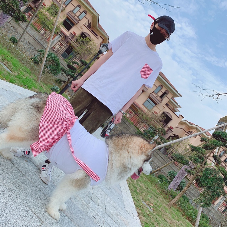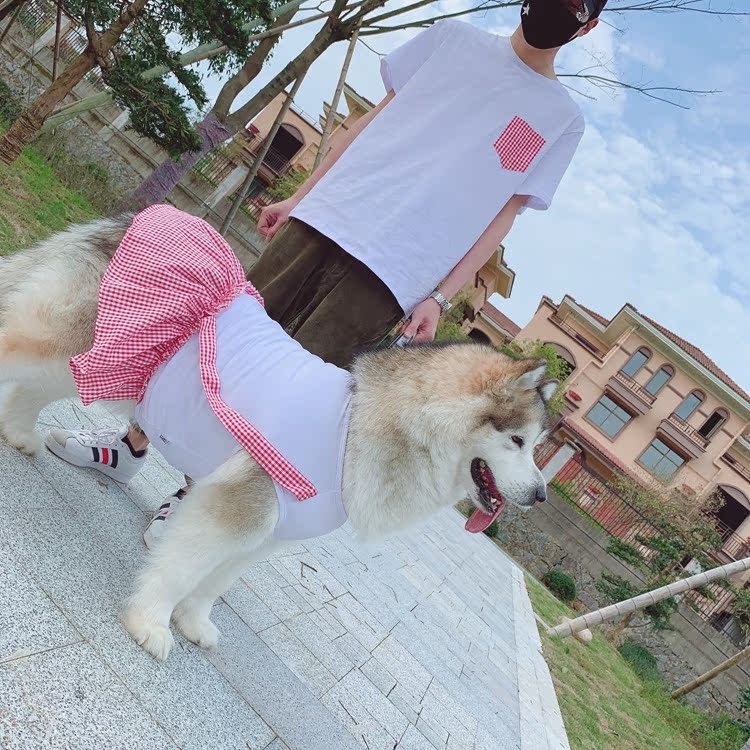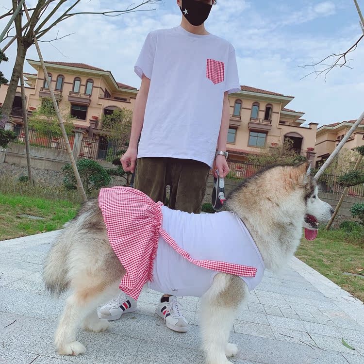 Pet Parent-Child Scottish kilt T-shirt spring and summer cat Teddy bullfight golden retriever dog cat clothes