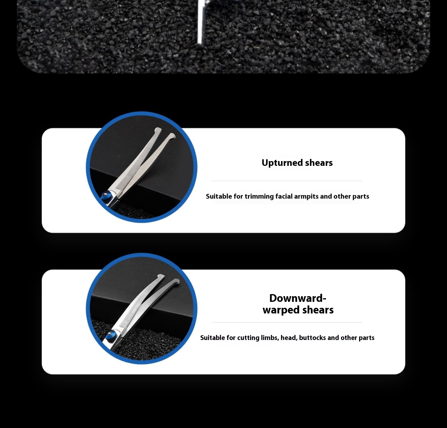 Upper bending scissors (trimming sensitive parts such as eyes and ears)