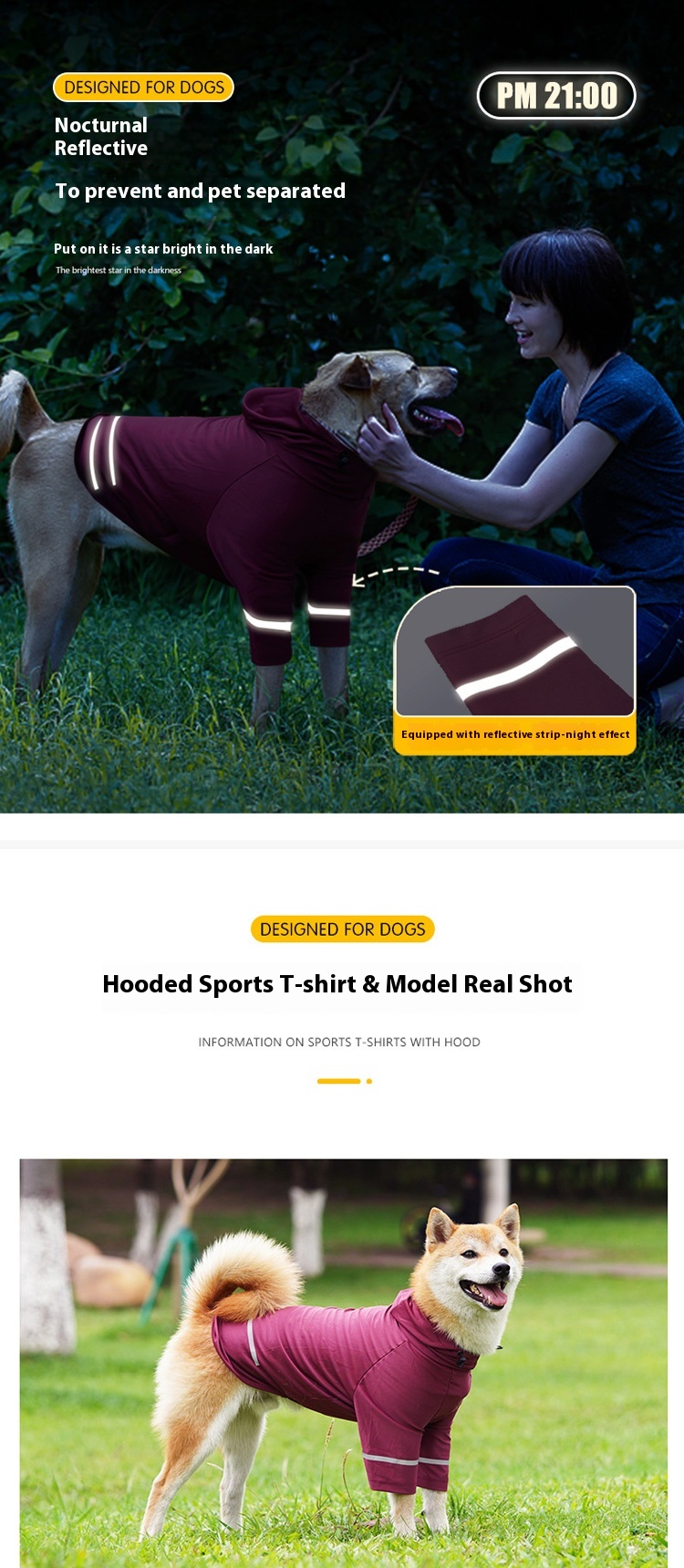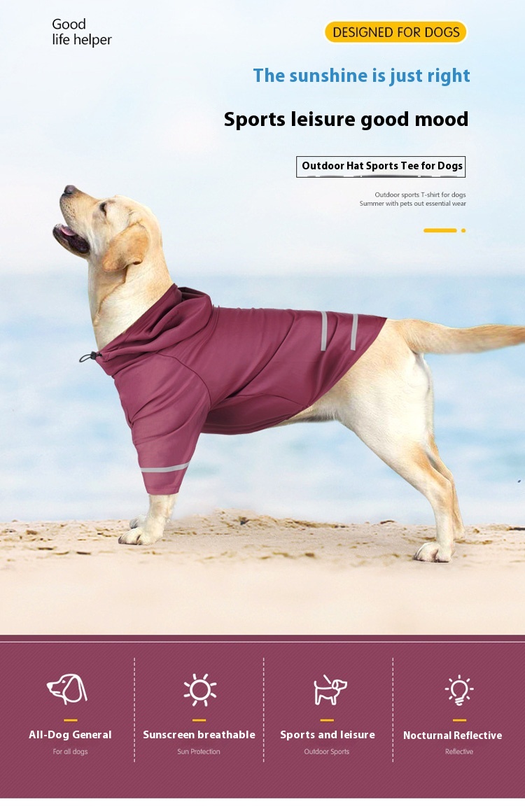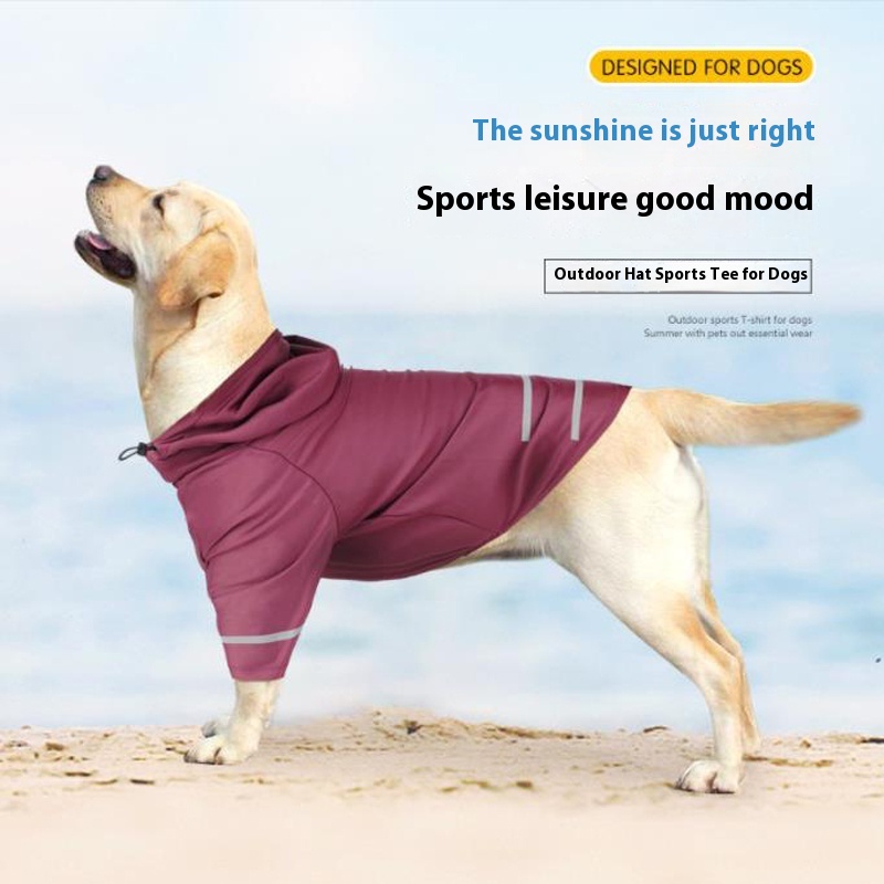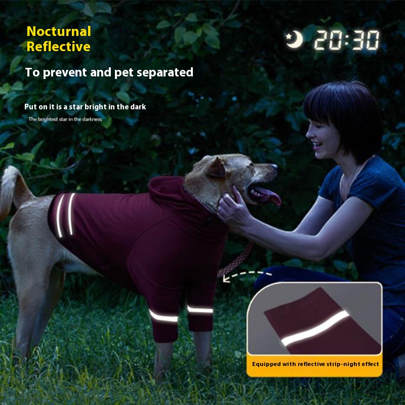 Pet sun protection anti-lint clothing summer ice silk breathable quick-drying dog clothes night reflective hooded dog T-shirt
