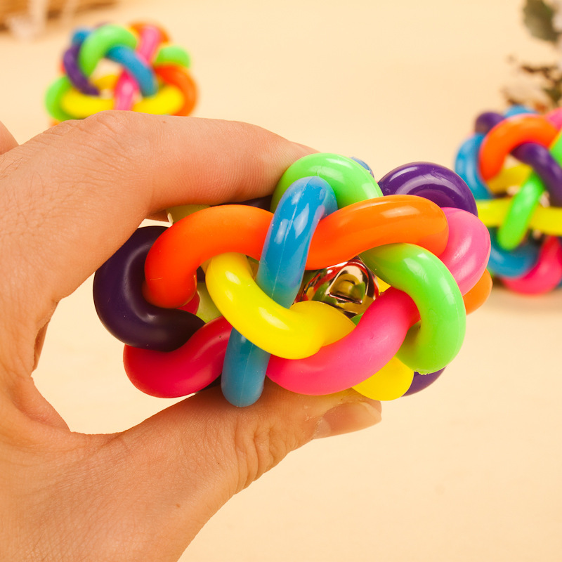Pet winding ball sound dog toy doggy colorful bell ball color rubber woven Rainbow Ball supplies