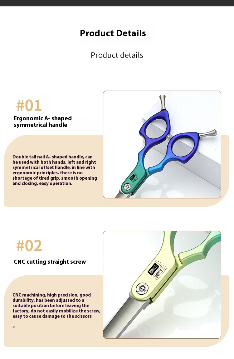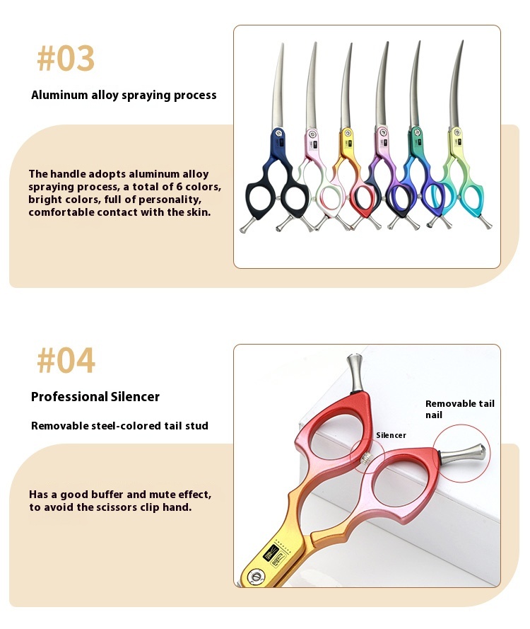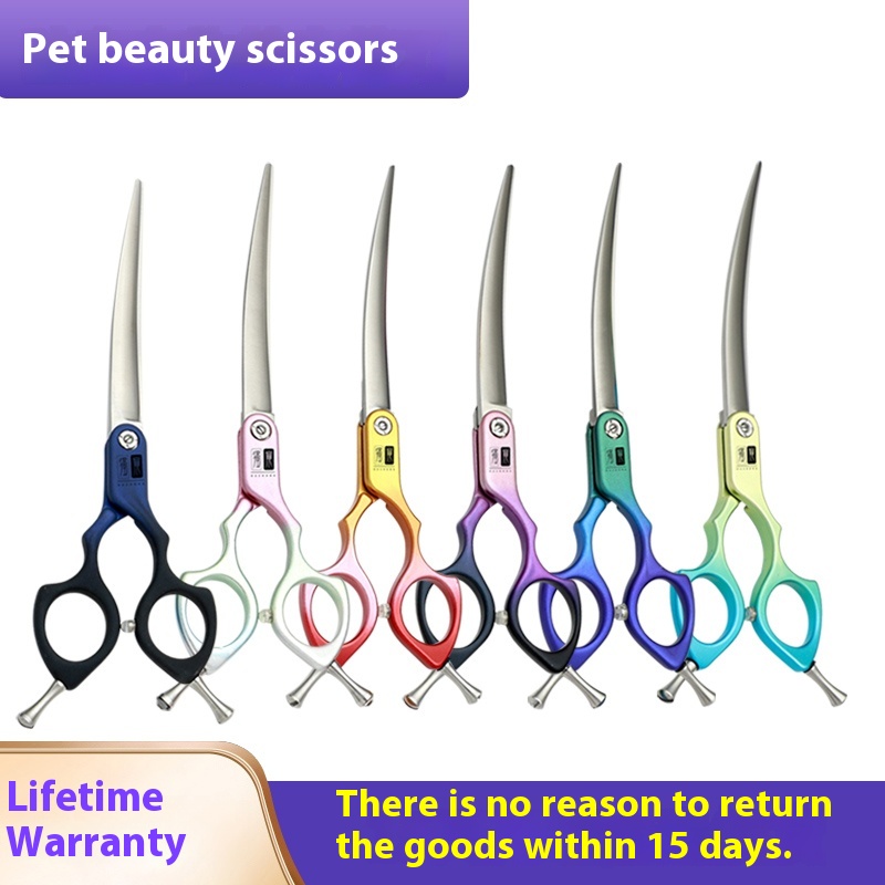 Professional pet scissors curved scissors warped scissors thinning shear teddy dog cat beauty scissors tool 6.5-inch professional