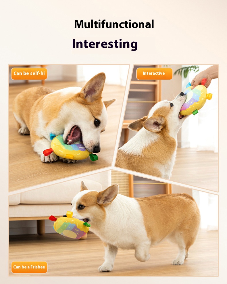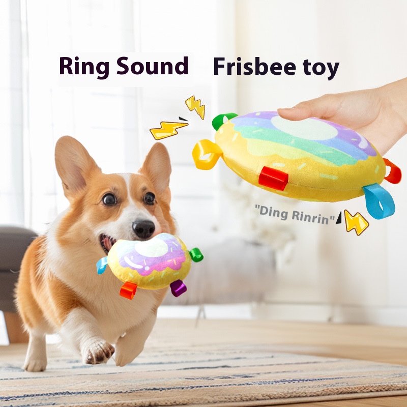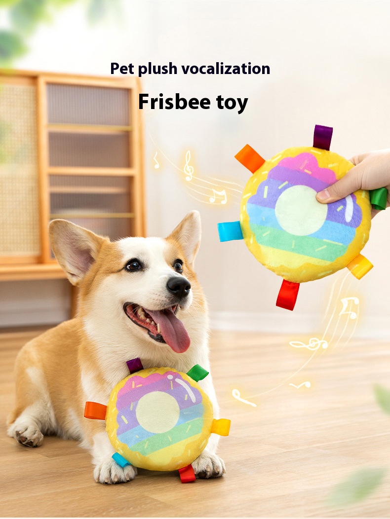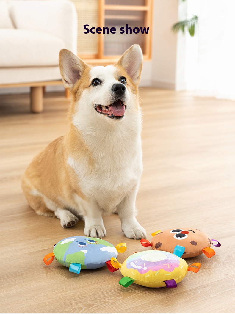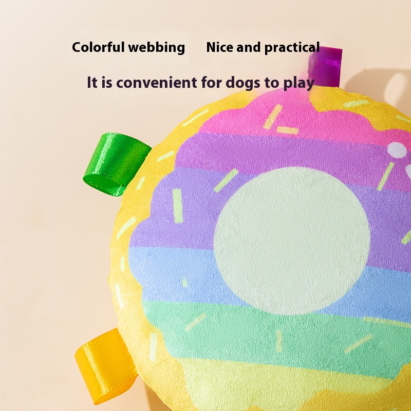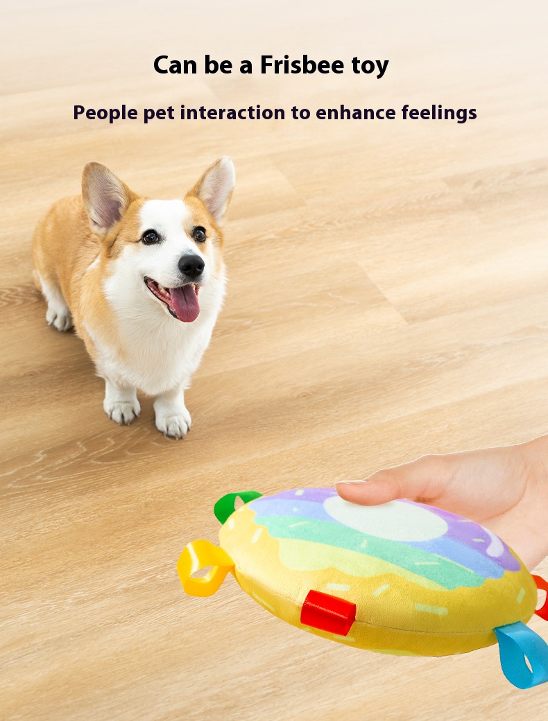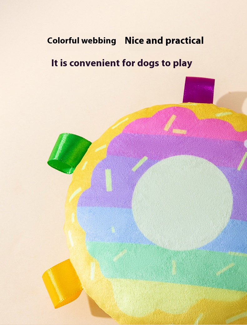Rainbow cartoon plush Frisbee toy medium large dog bite-resistant pet dog toy supplies for outdoor play