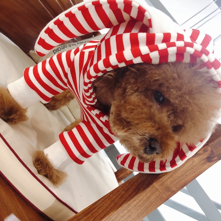 Red and white striped ears puppy dog clothes Teddy cat bullfight golden retriever Ala autumn and winter clothing
