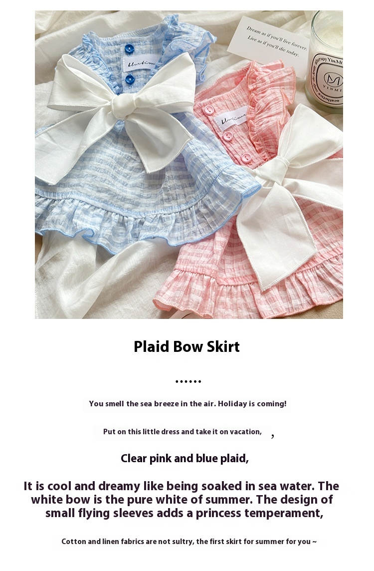 Coral pink [summer sea breeze] Plaid bowknot dress