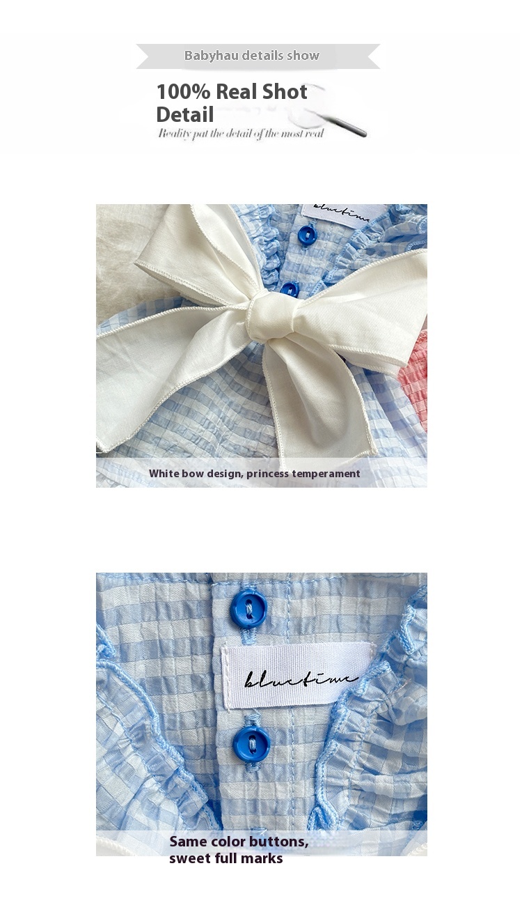 Navy blue [summer sea breeze] Plaid bowknot dress