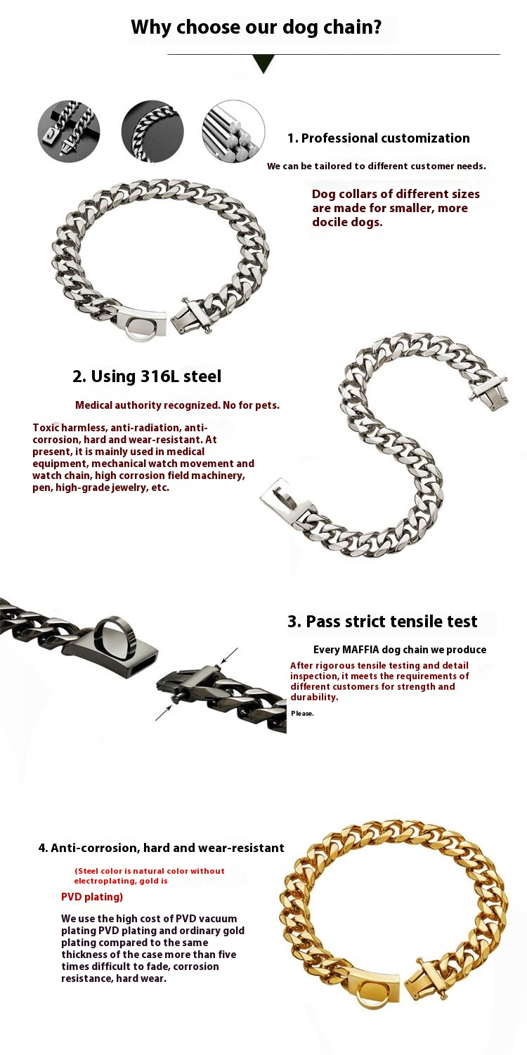 Simple Big Dog gold necklace stainless steel dog collar bandana anti-bite bold hand holding rope medium large dog bully Cane Corso Simple Big Dog gold necklace stainless steel dog collar bandana anti-bite bold hand holding rope medium large dog bully Cane Corso