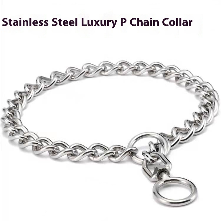 Stainless steel dog collar 360 掳 rotating anti-winding golden retriever dog chain dog training small medium and large bolt bite-proof protector p chain collar