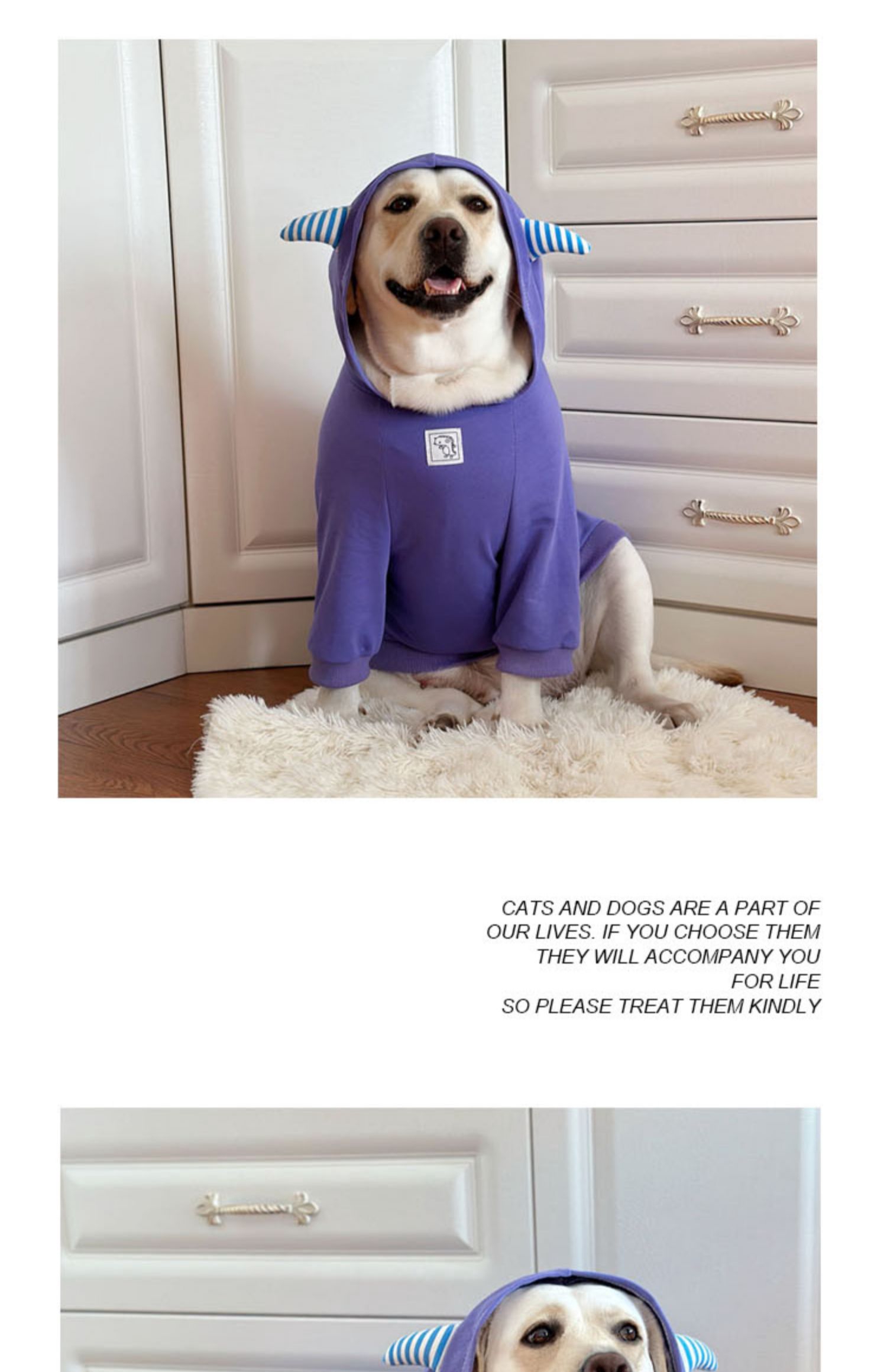This trendy lightweight dog hoodie is perfect for large breeds like Golden Retriever and Labrador. Featuring a cute design with ears on the hood, this hoodie keeps your pet stylish and comfortable during the spring and autumn. Ideal for outdoor activities and casual wear.