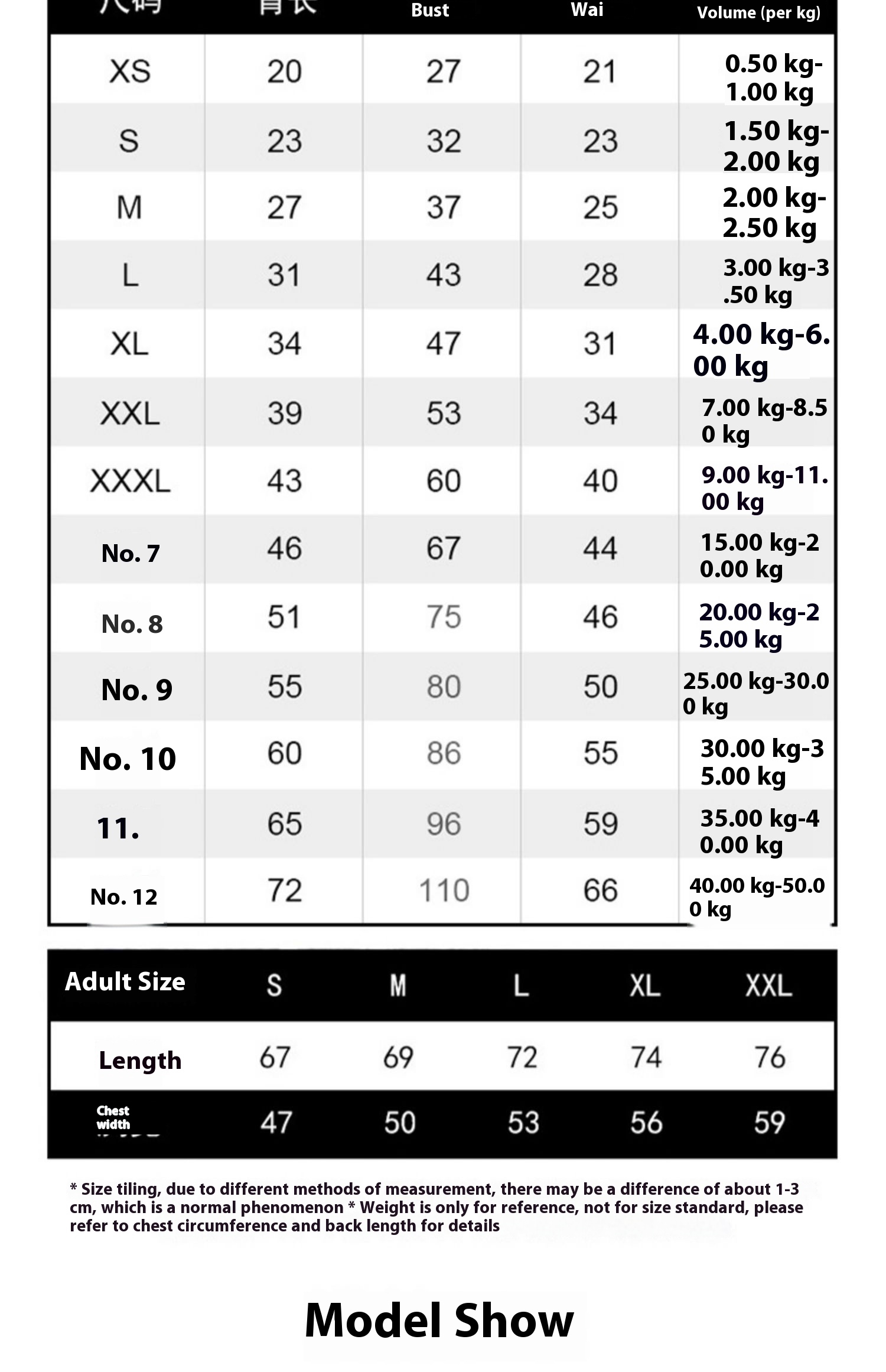 No.9: chest circumference about 80cm (22.50 kg-27.50 kg