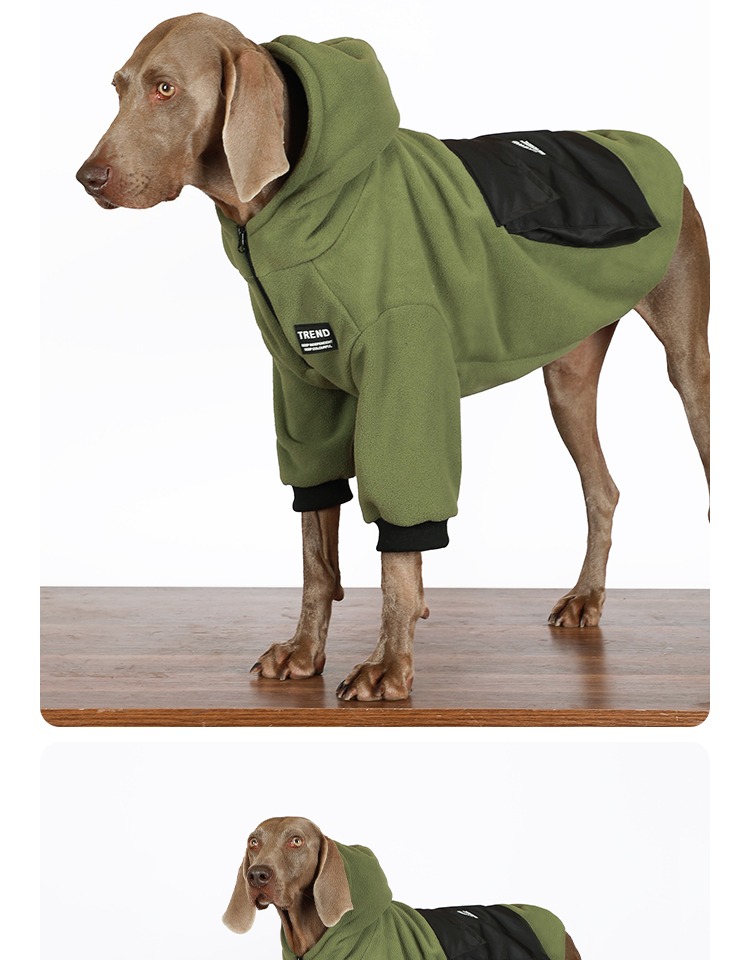 Warm Polar Fleece Dog Hoodie with Storage Pocket for Large Breeds - Trendy Zipper Design