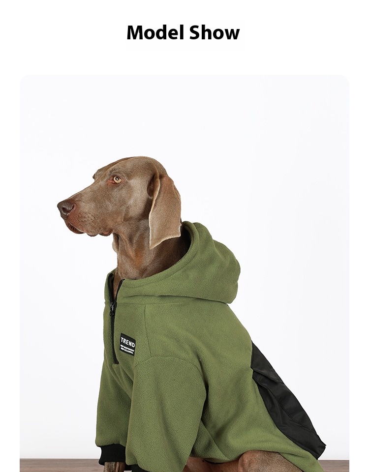 This polar fleece dog hoodie is perfect for large breeds like Golden Retriever, Labrador, and Doberman. Featuring a trendy high-neck zipper design and a back storage pocket, this hoodie ensures your pet stays warm and stylish during the autumn and winter. Ideal for outdoor activities and casual wear.