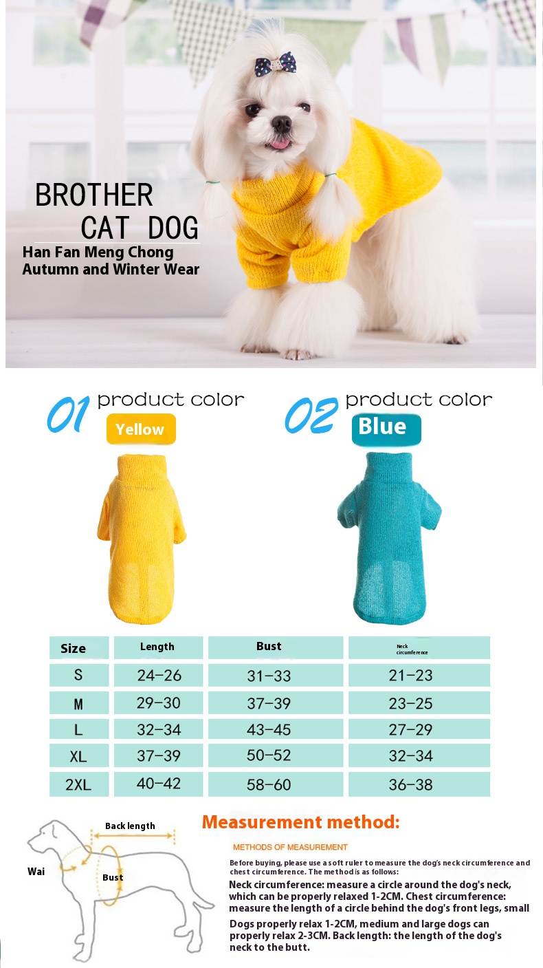 Warm Turtleneck Dog Sweater - Autumn Winter Cold-Proof Puppy Clothes