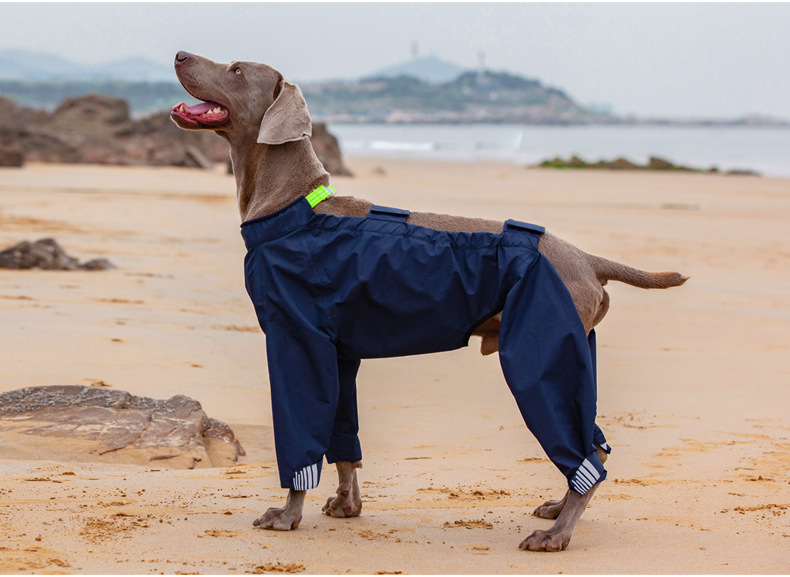 The Lovinpet waterproof four-legged dog raincoat is the ultimate protection for your pet during rainy weather. Made from durable, high-quality materials, this raincoat ensures your dog stays dry and comfortable. The full-body design includes a hood and reflective strips for enhanced visibility, making it ideal for nighttime walks. The raincoat's breathable fabric and secure fit ensure your dog can move freely while staying protected. The navy blue color adds a stylish touch, and the adjustable straps provide a perfect fit for dogs of all sizes. This raincoat is easy to put on and take off, and it features a non-blocking design that ensures your dog's vision remains unobstructed. Save Big on this Best Quality raincoat with Free Shipping and Easy Return options.
