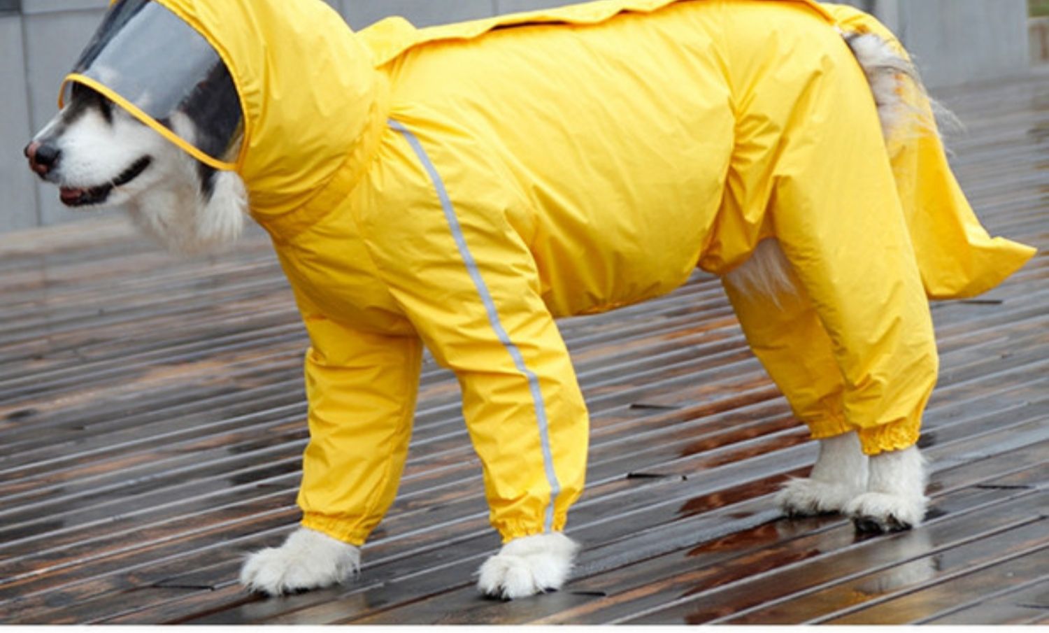 All-Inclusive Waterproof Dog Raincoat with Hood and Bellyband for Large Dogs